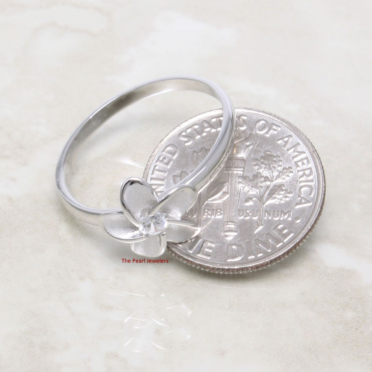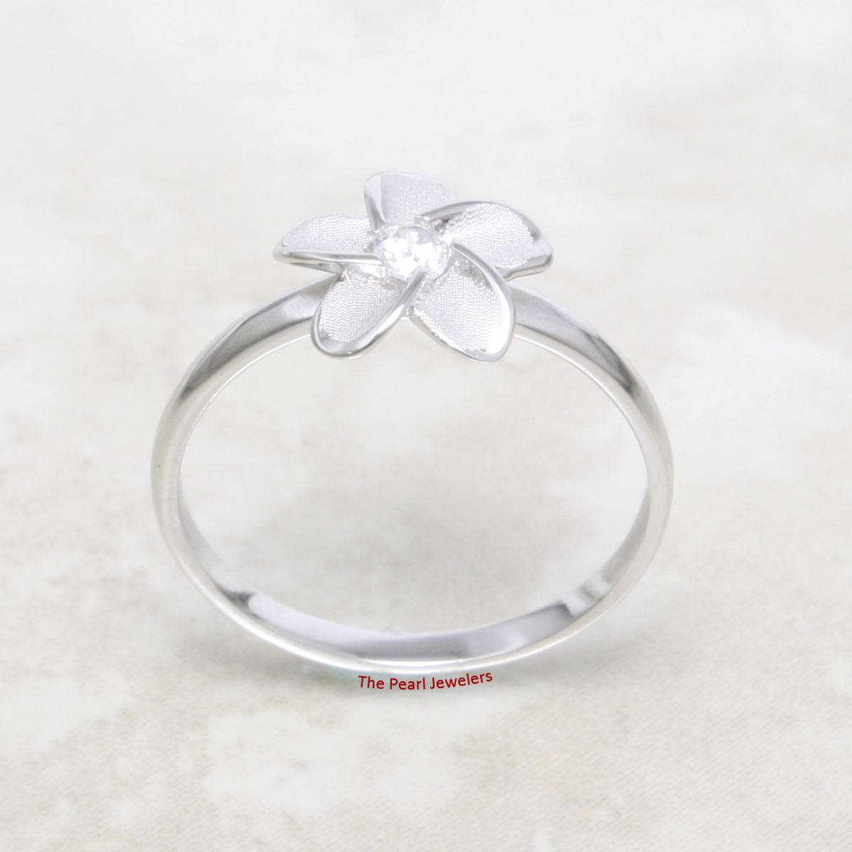 **Sterling Silver Plumeria Flower Ring with Cubic Zirconia (10mm)**