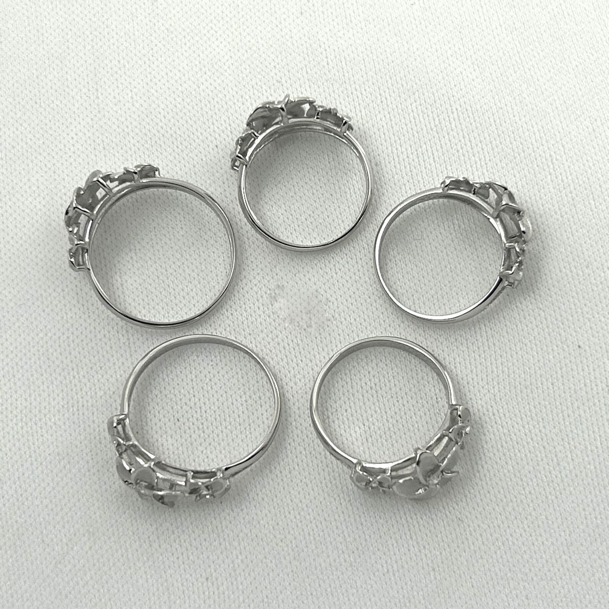 **Sterling Silver Triple Plumeria Ring with Cubic Zirconia**
