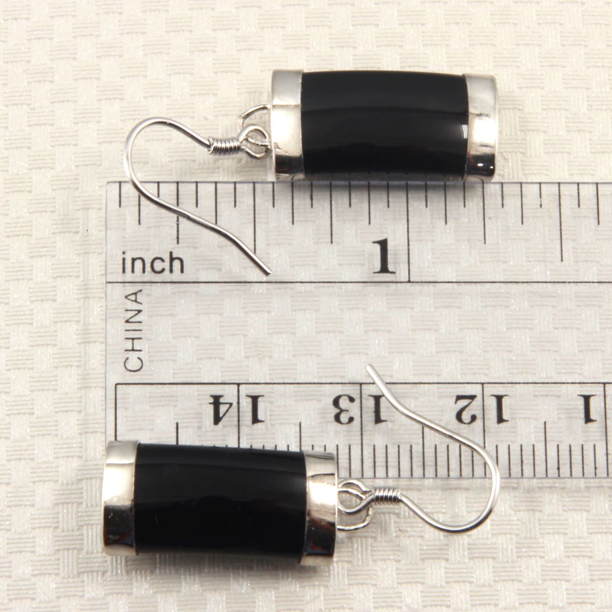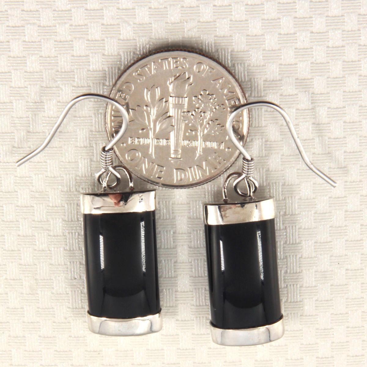 **Solid Sterling Silver 925 Fish Hook Black Onyx Dangle Earrings**