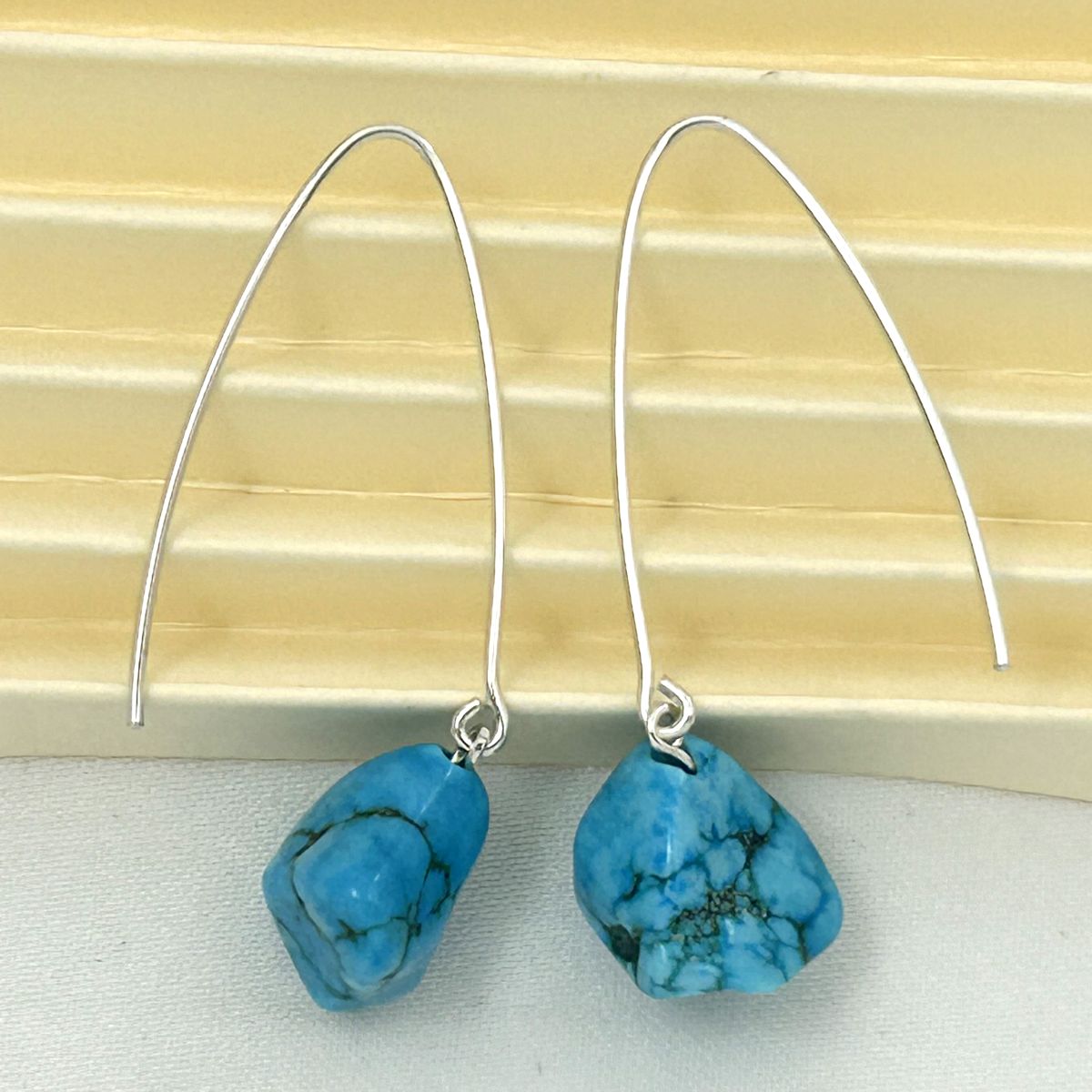 Sterling Silver Turquoise V-Shaped Wire Dangle Earrings designed for comfort and dependable daily wear.