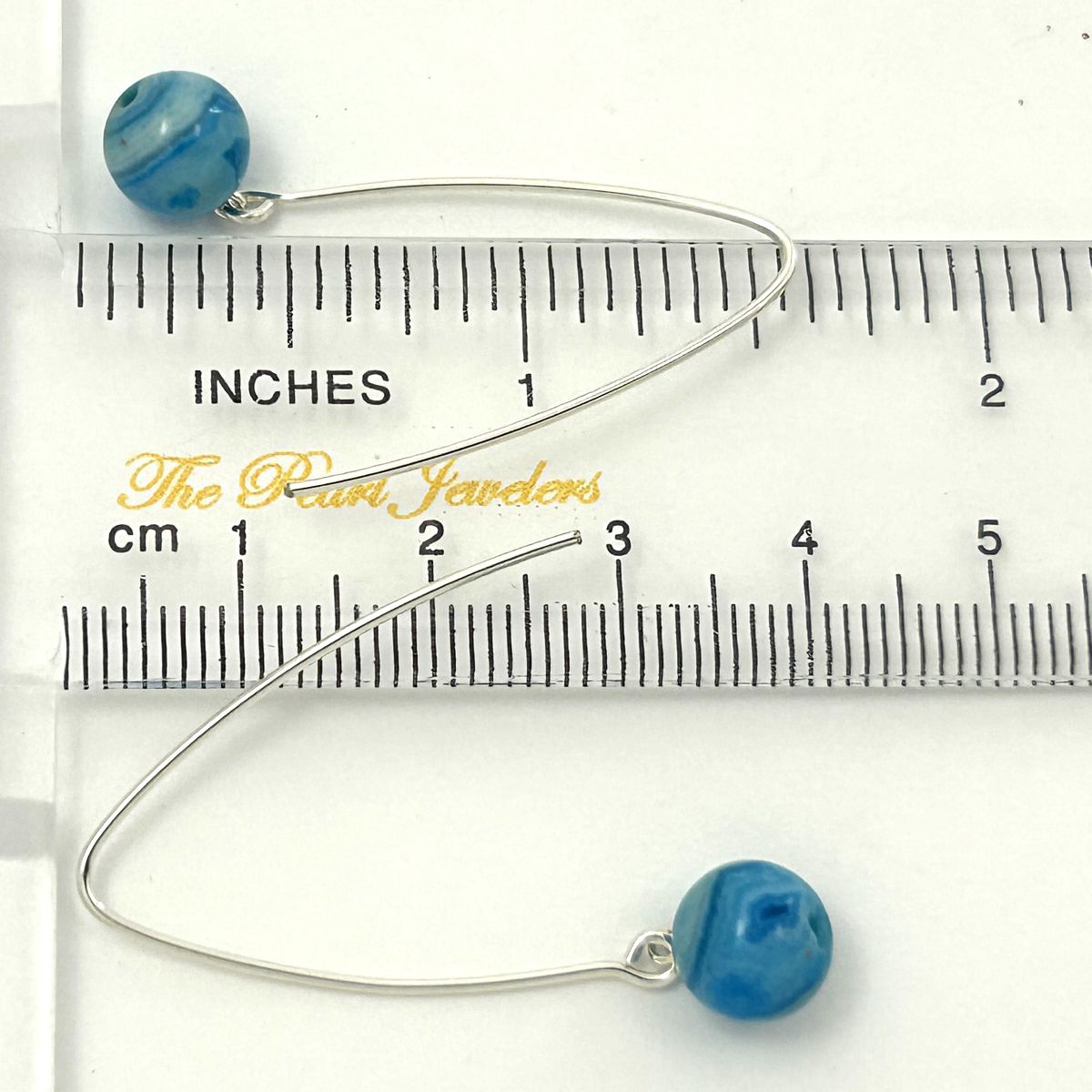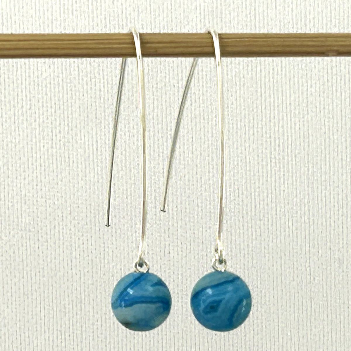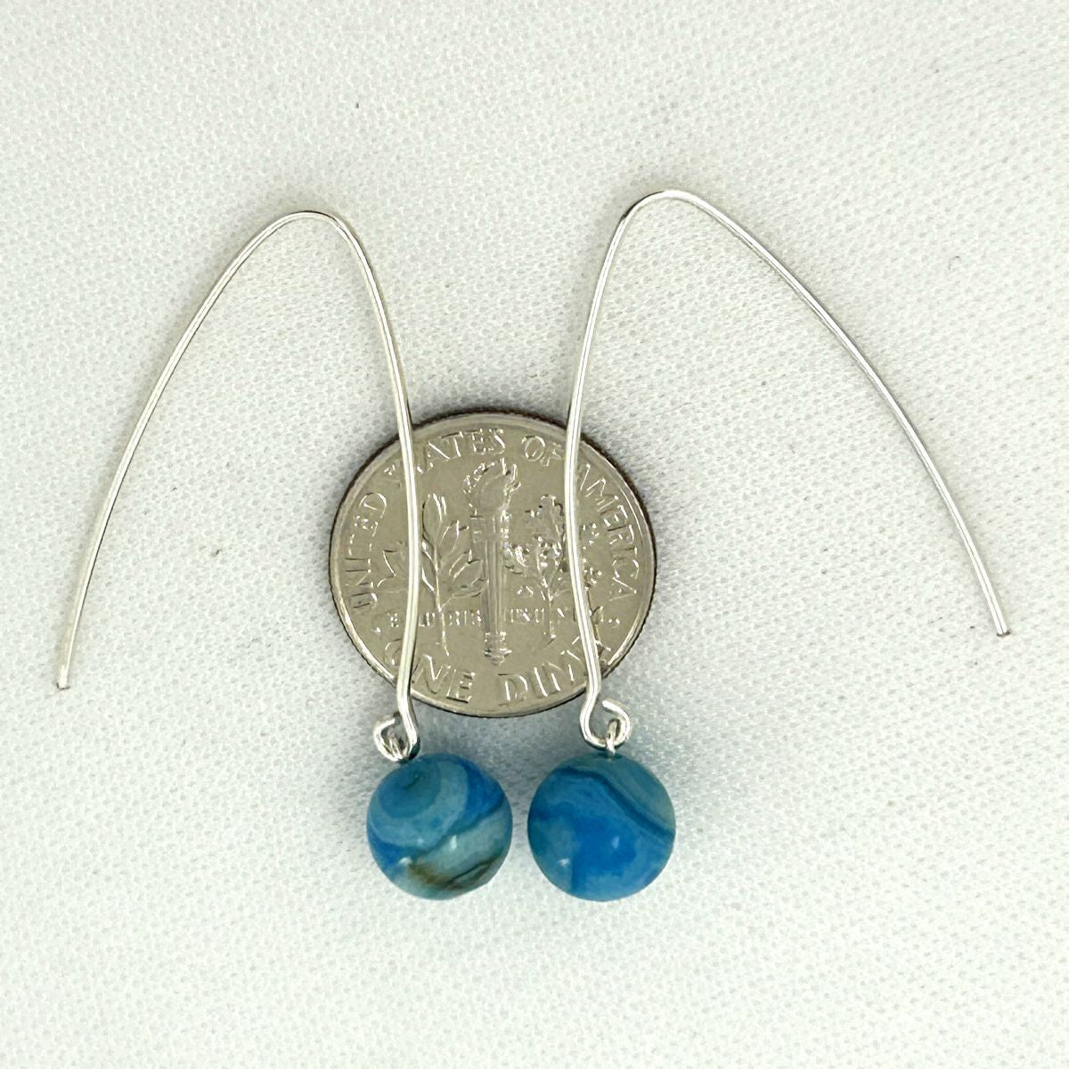 **Solid Sterling Silver 925 V-Shaped Wire Agate Earrings (Turquoise Color)**