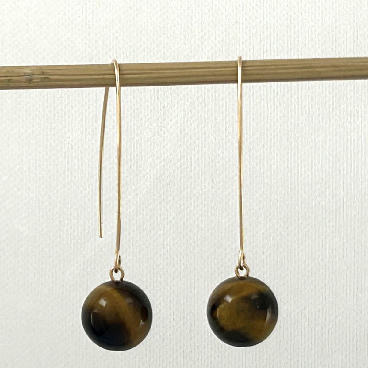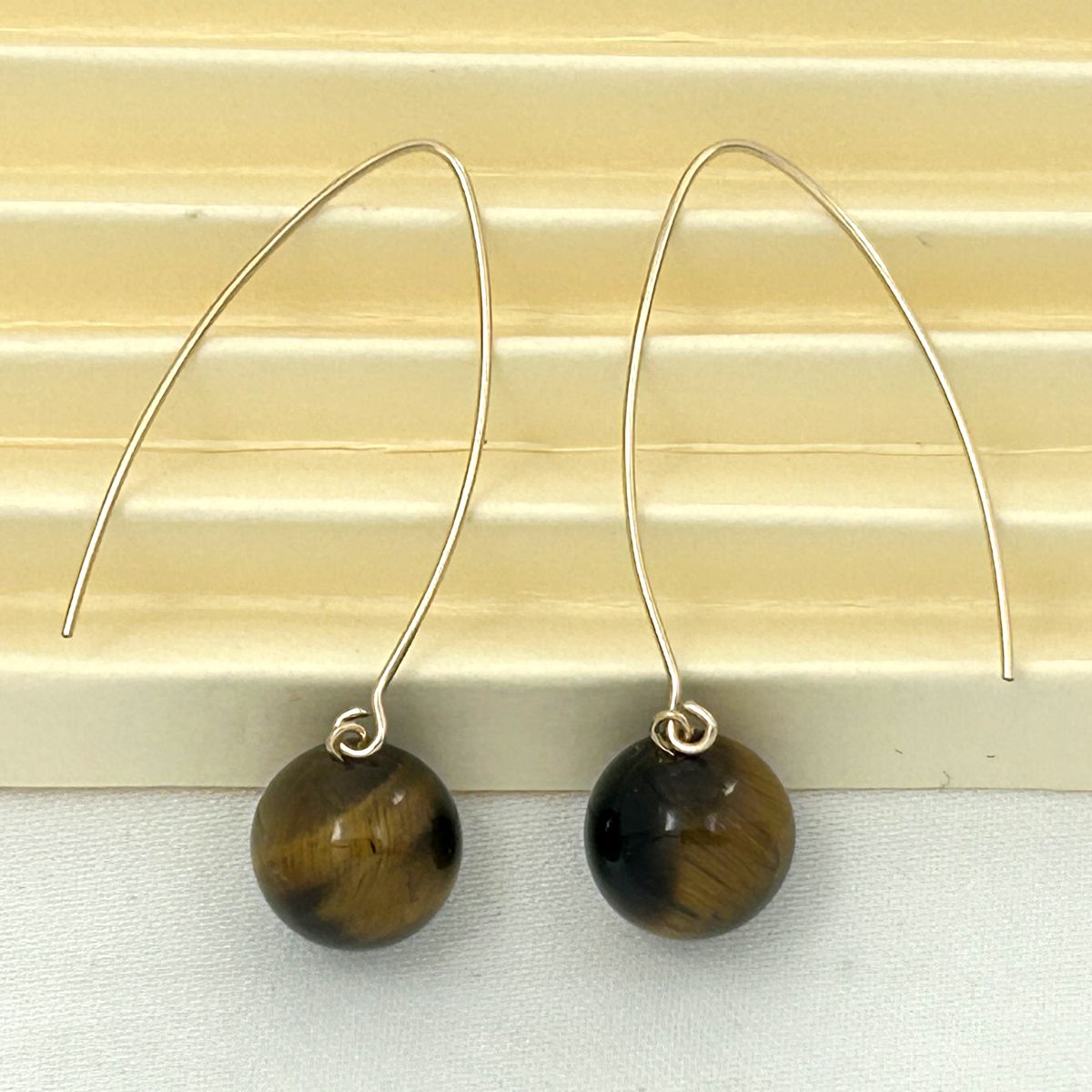 🤎 Tiger Eye Gold V-Wire Earrings