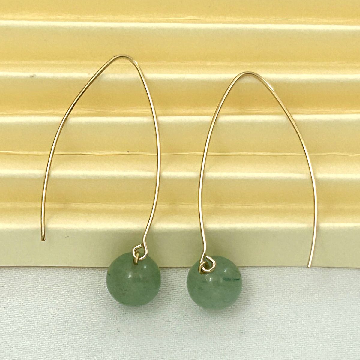 Fresh green aventurine beads in 14K gold filled V-shaped wire, handmade with a natural and chic style.