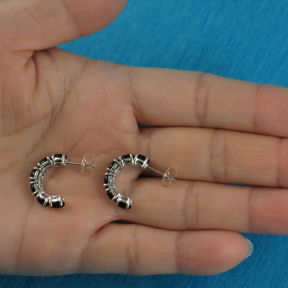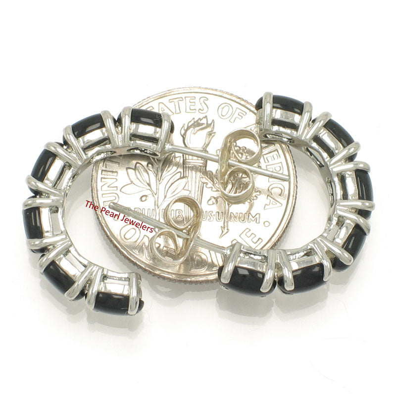 **Sterling Silver 12pcs Oval Cabochon Black Onyx C Post Earrings**