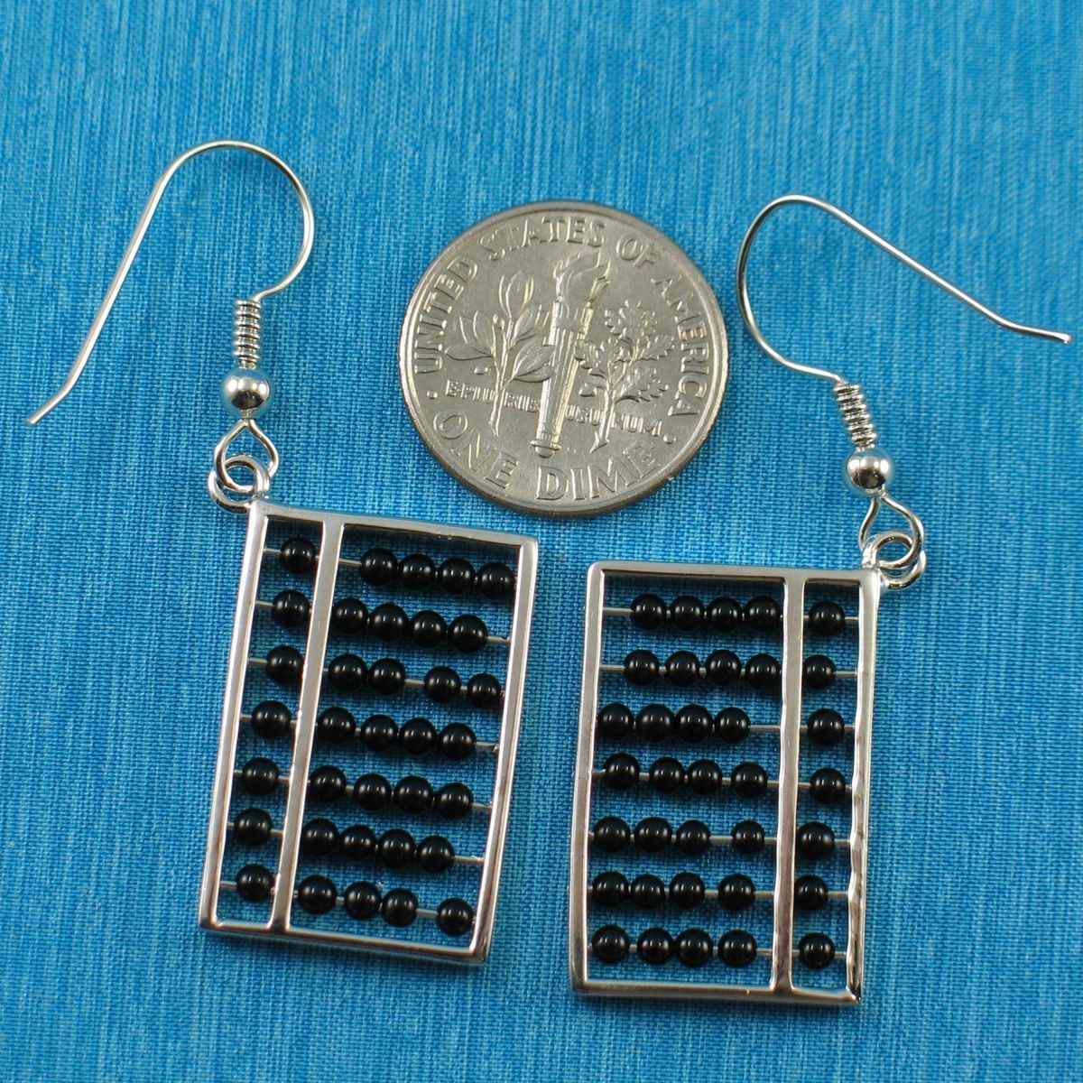 **Solid Sterling Silver 925 Black Onyx Abacus Hook Earrings**