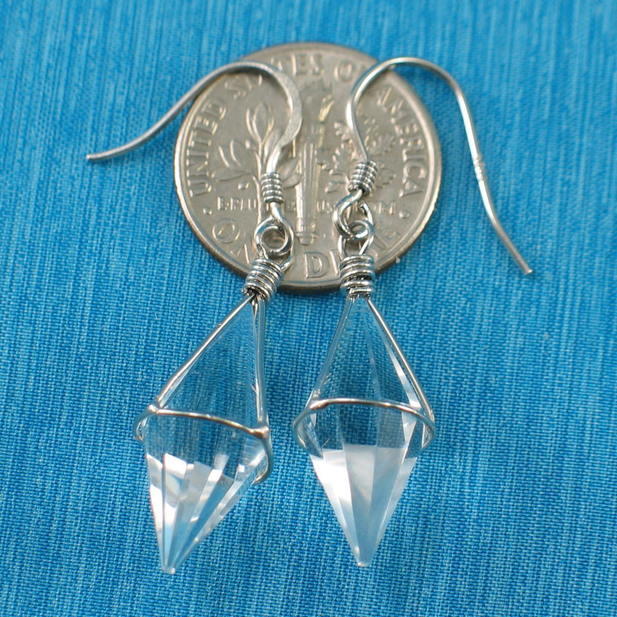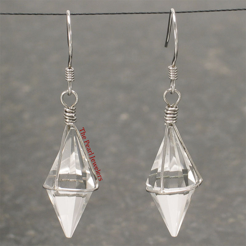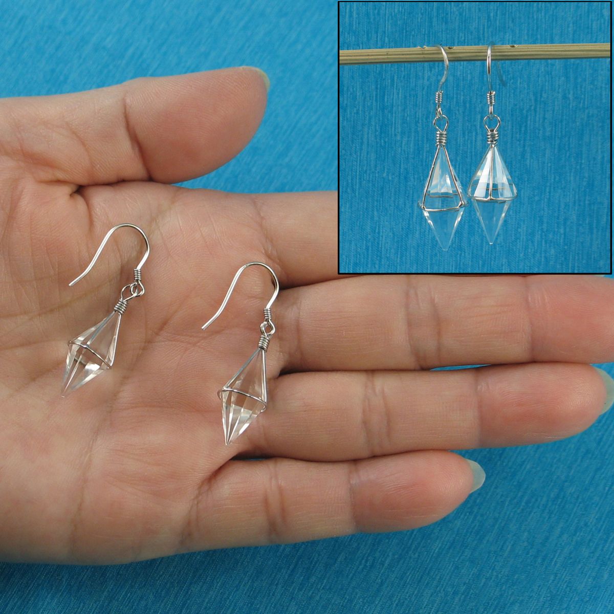 Solid Sterling Silver 925 Good Fortune Crystal Hook Earrings (Silver)