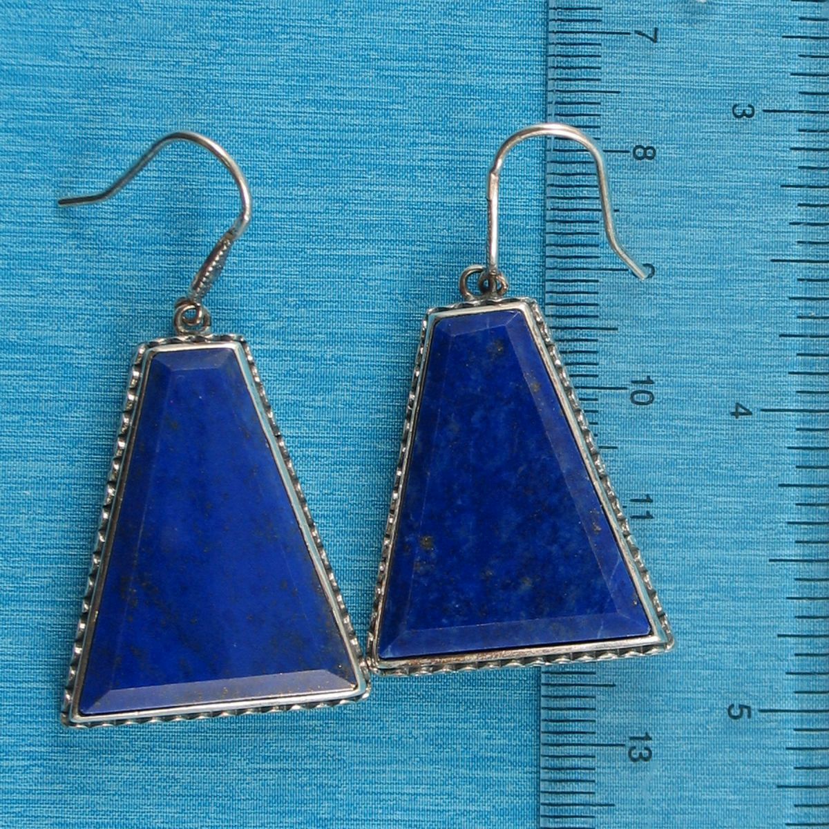 **Solid Sterling Silver 925 Lapis Lazuli Antique Hook Earrings (Trapezoid 29mm)**