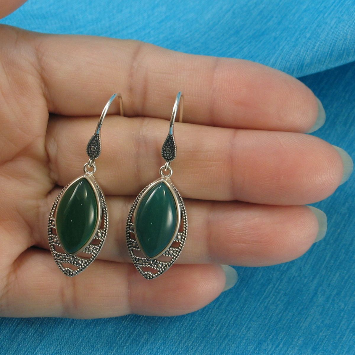 š Filename: sterling-silver-green-agate-hook-earrings-marquise-dangle-'9110643