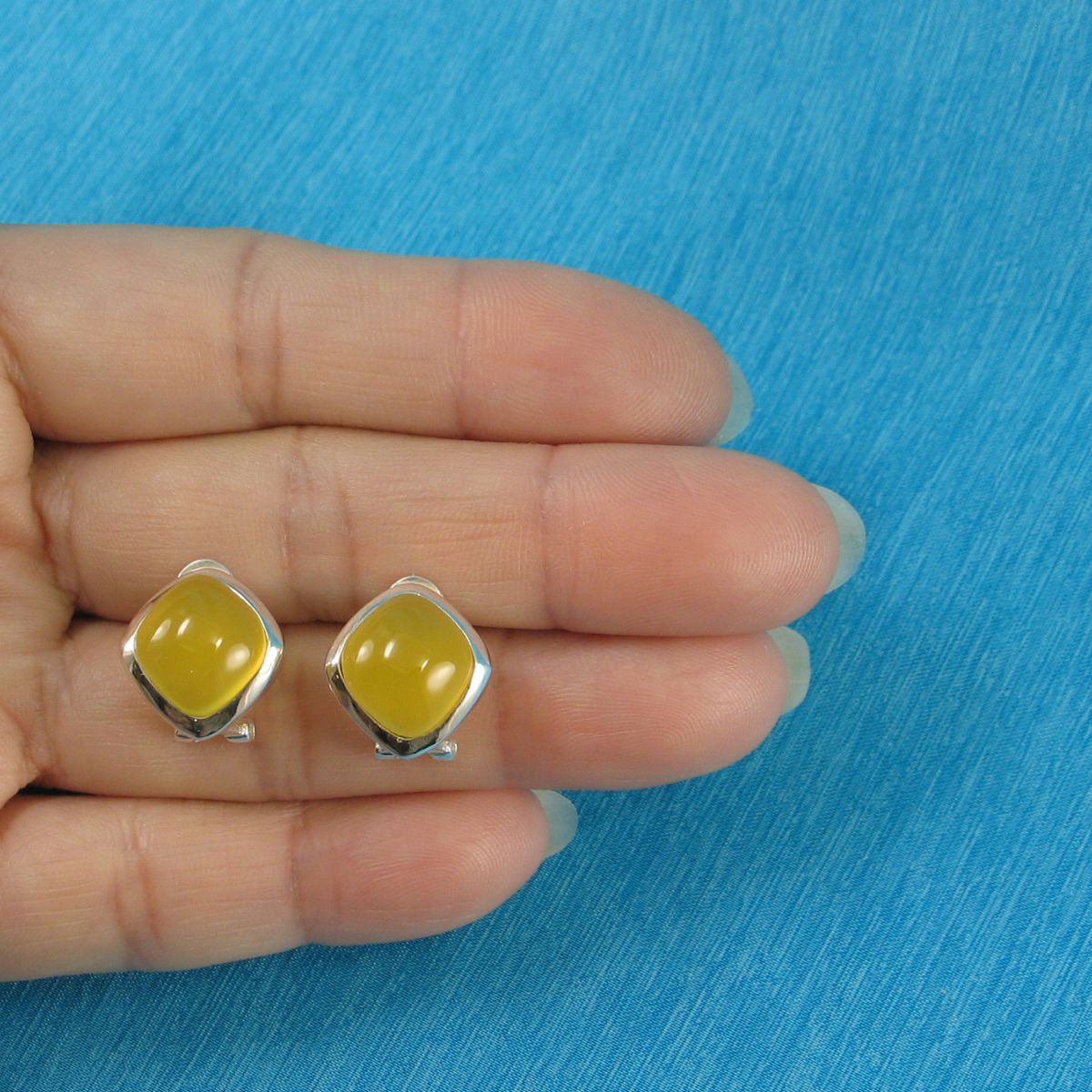 Sterling Silver Yellow Agate Rhombus Omega Back Earrings