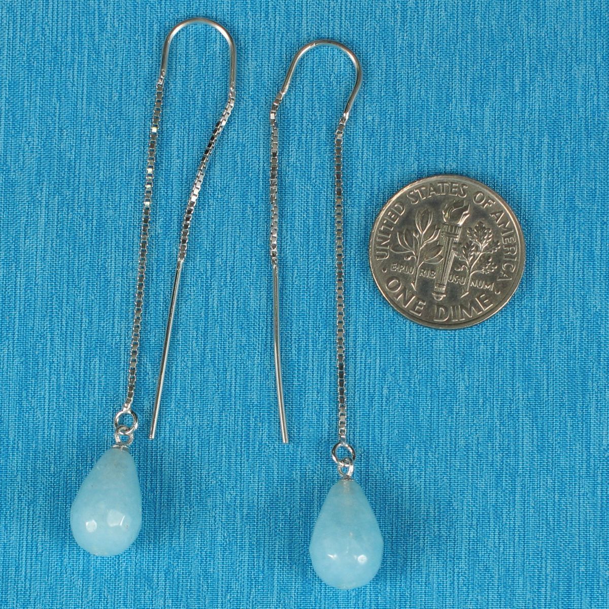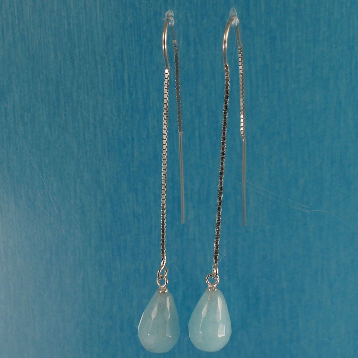 Handmade sterling silver box chain earrings with smooth aquamarine gemstones, rhodium finish adds shine and durability. Hand-finished in Hawaii with attention to detail and balanced proportions. designed for comfort and dependable daily wear.