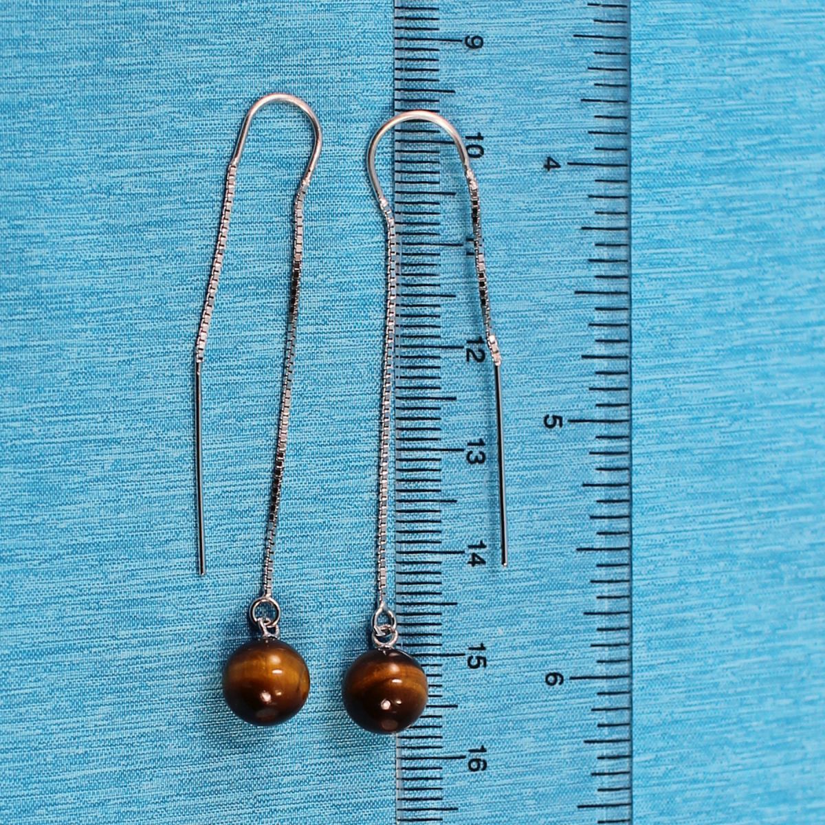 Solid Sterling Silver 925 Box Chain Tiger Eye Earrings