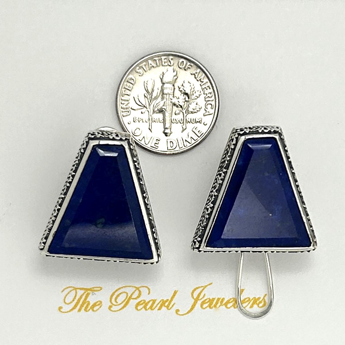 **Solid Sterling Silver 925 Lapis Lazuli Omega Clip Earrings**