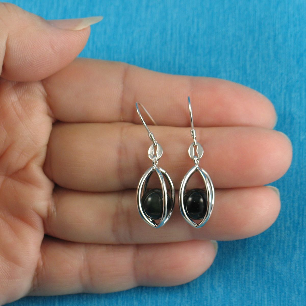 š Filename: solid-sterling-silver-925-lucky-lantern-black-obsidian-hook-earrings-'9119946