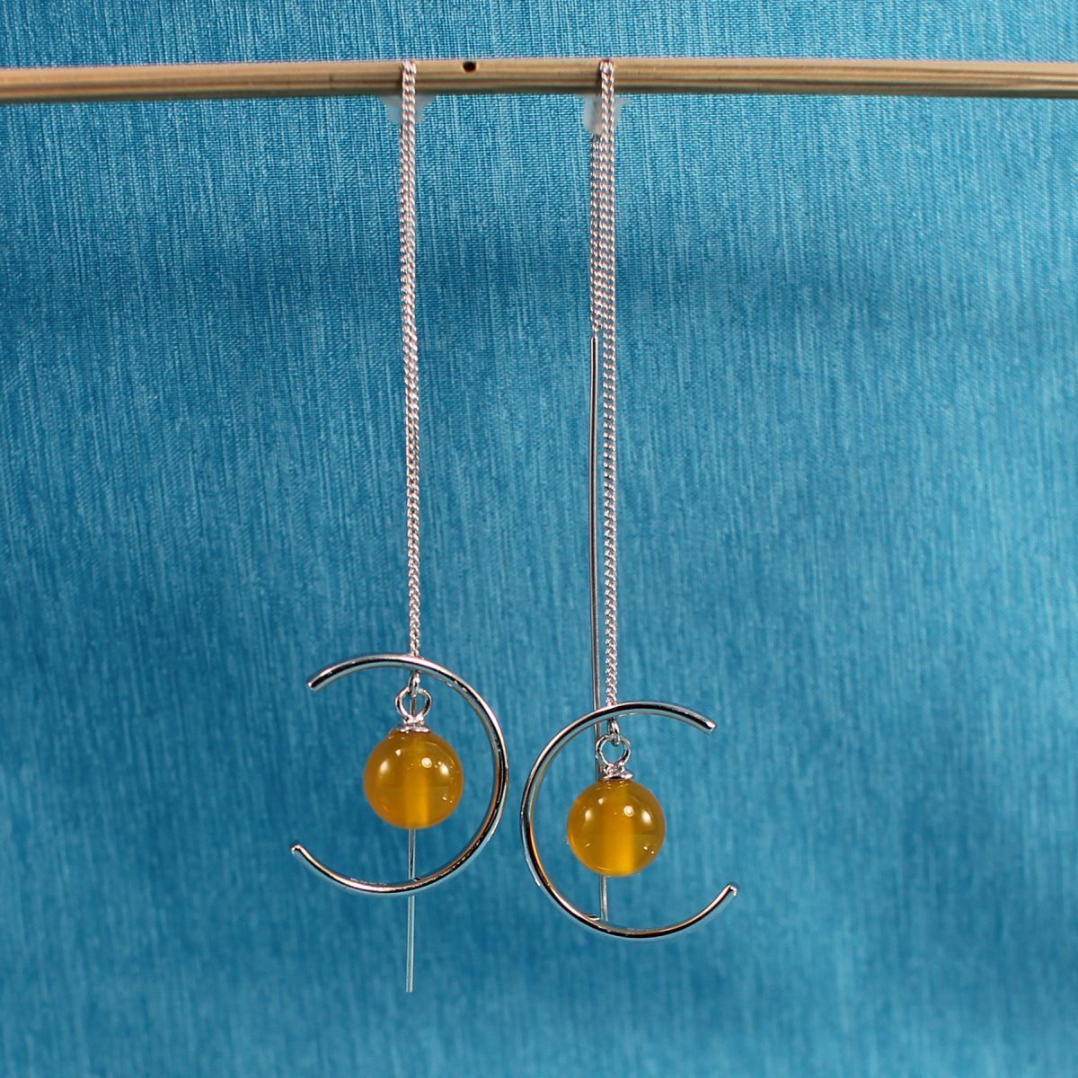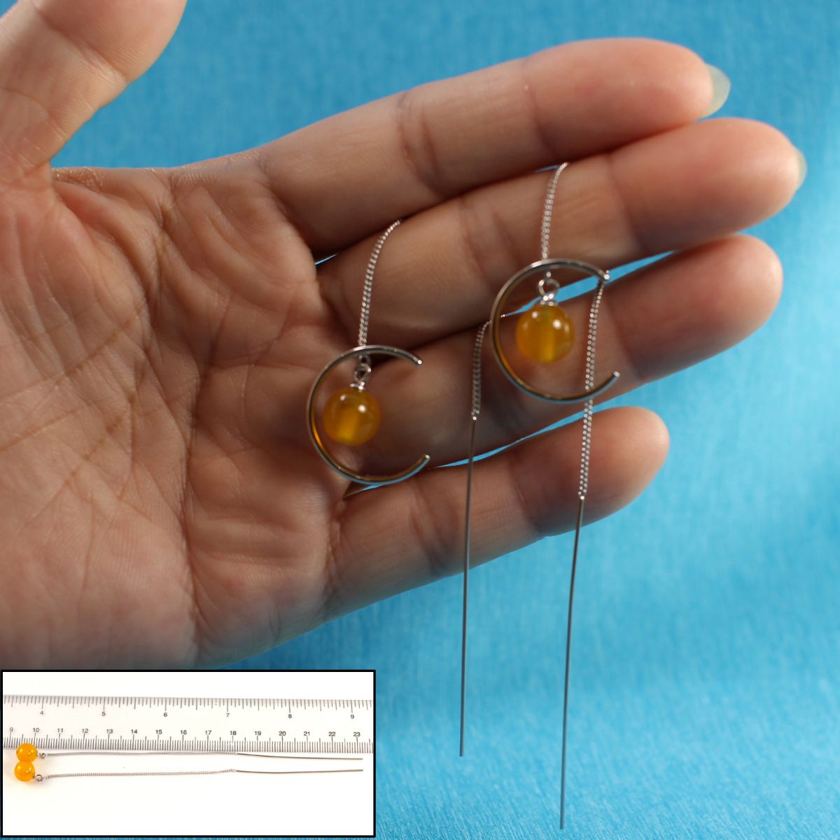 **Solid Sterling Silver 925 Yellow Agate Threader Earrings**
