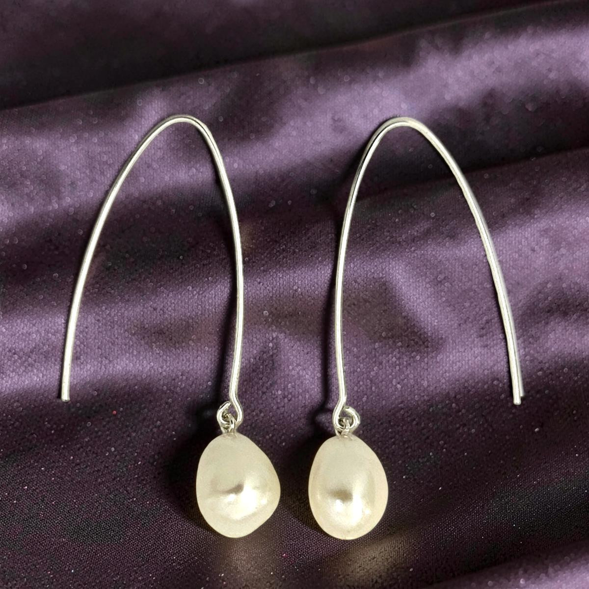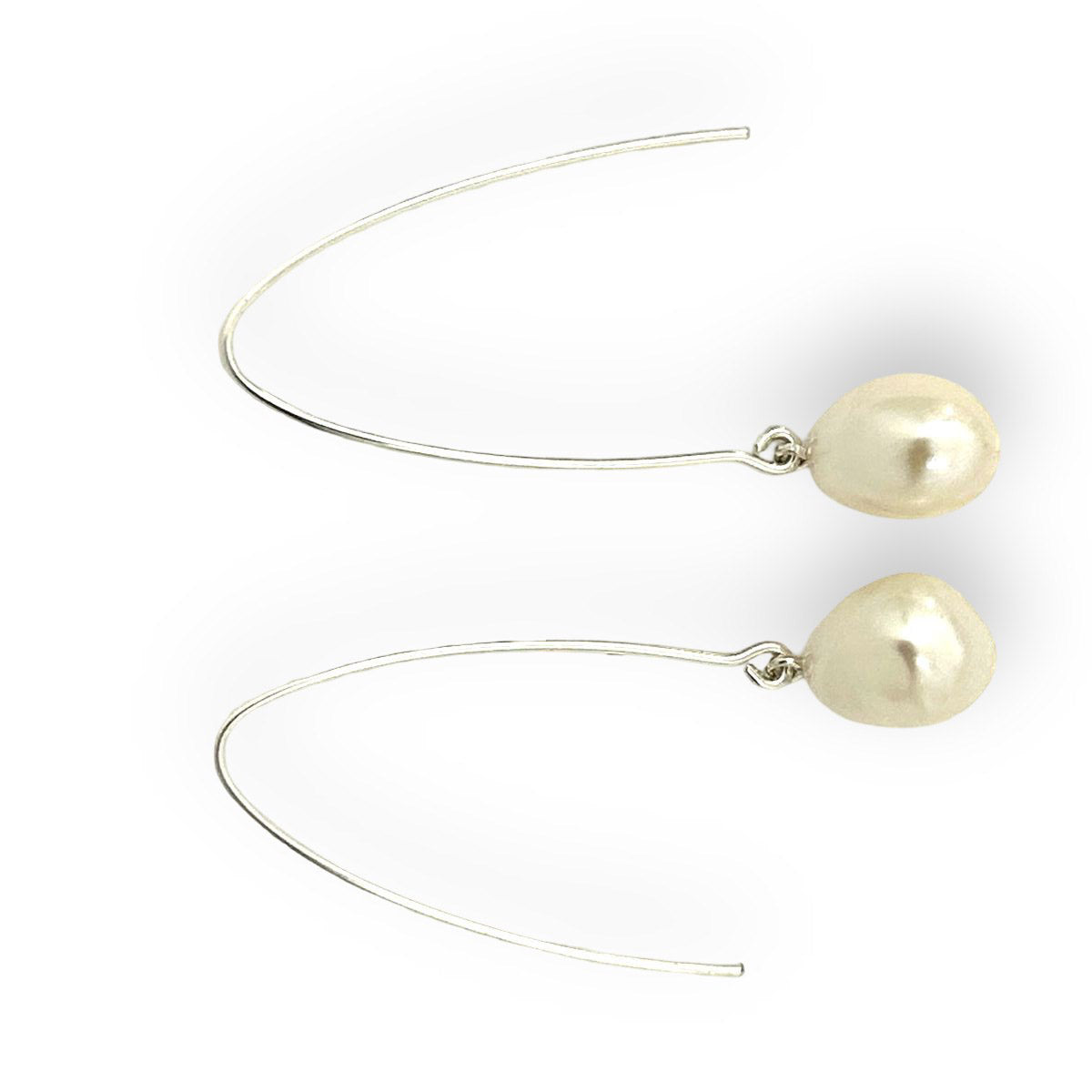 White baroque pearls dangle from sleek V-shaped sterling wires—refined simplicity for daily elegance, designed for comfort and dependable daily wear.