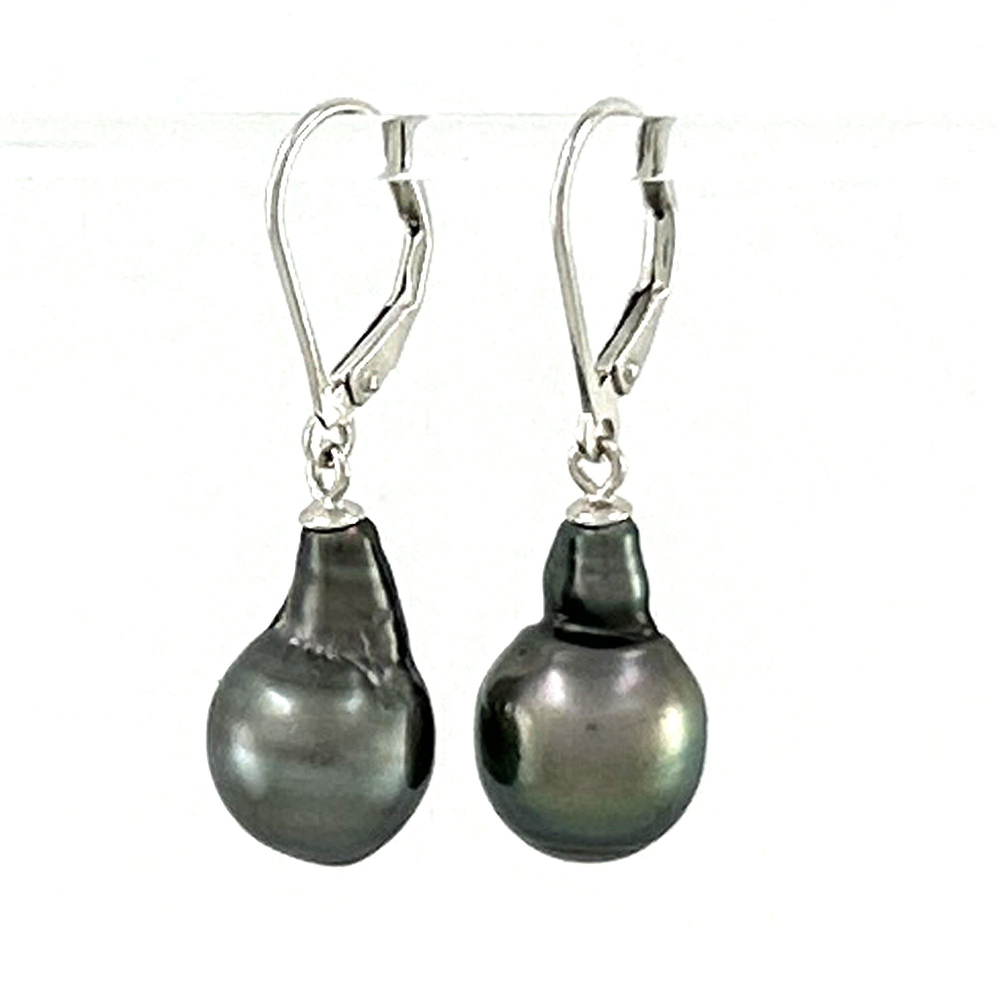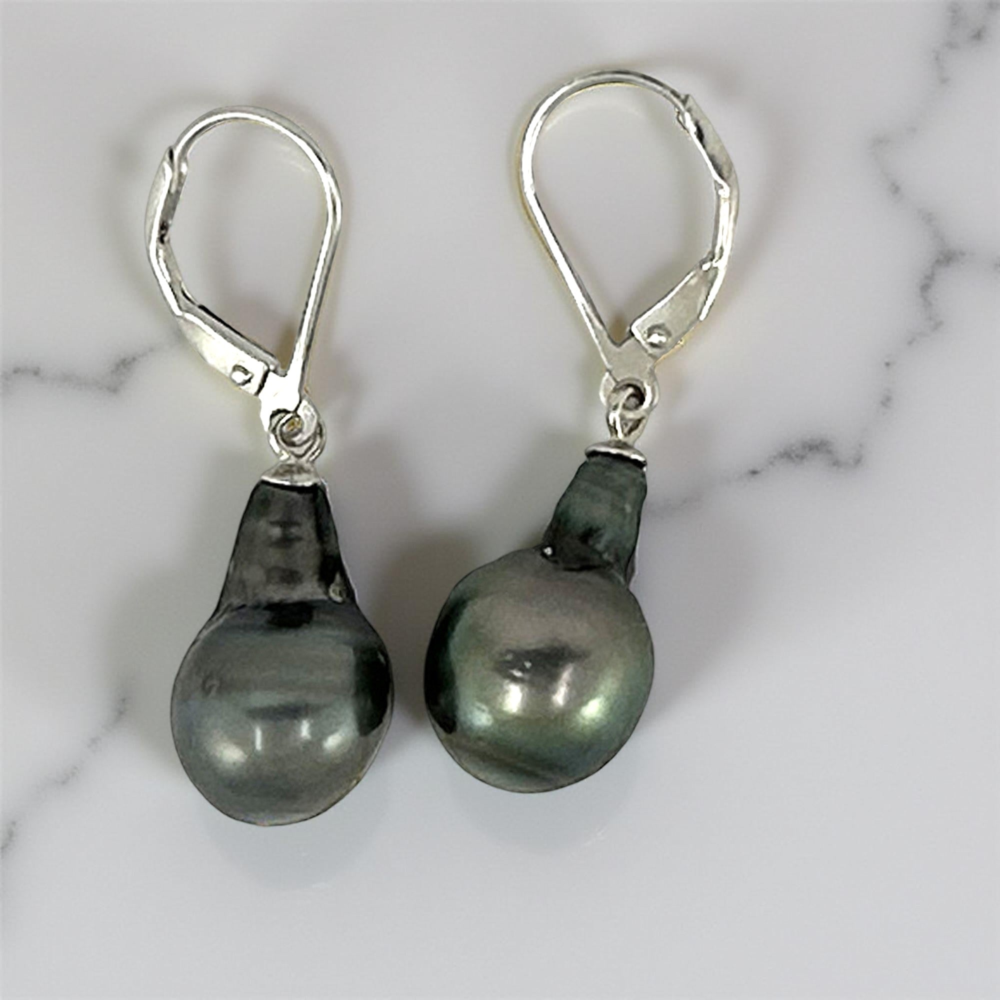 Organic black Tahitian pearls swing from secure sterling silver leverback closures, designed for comfort and dependable daily wear.