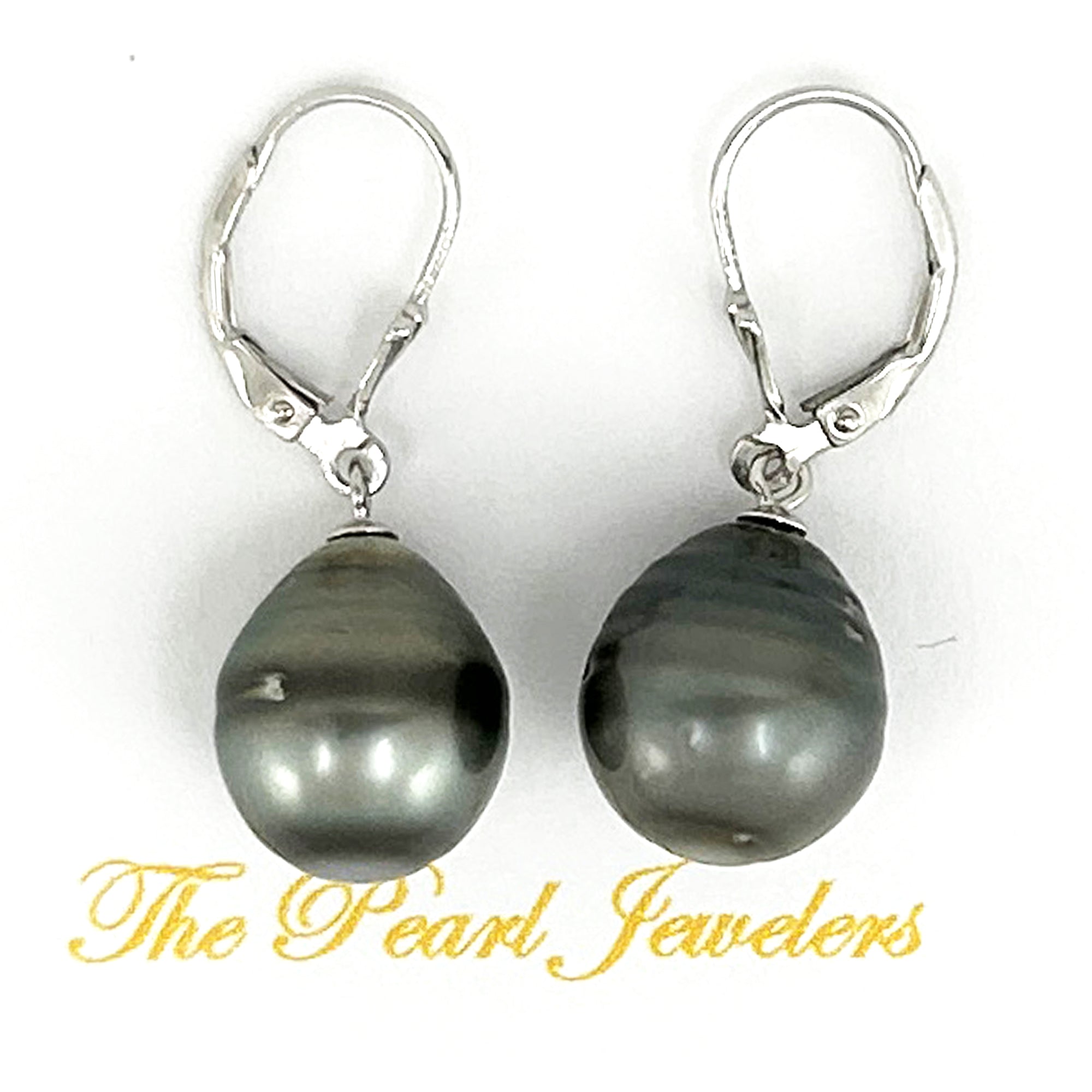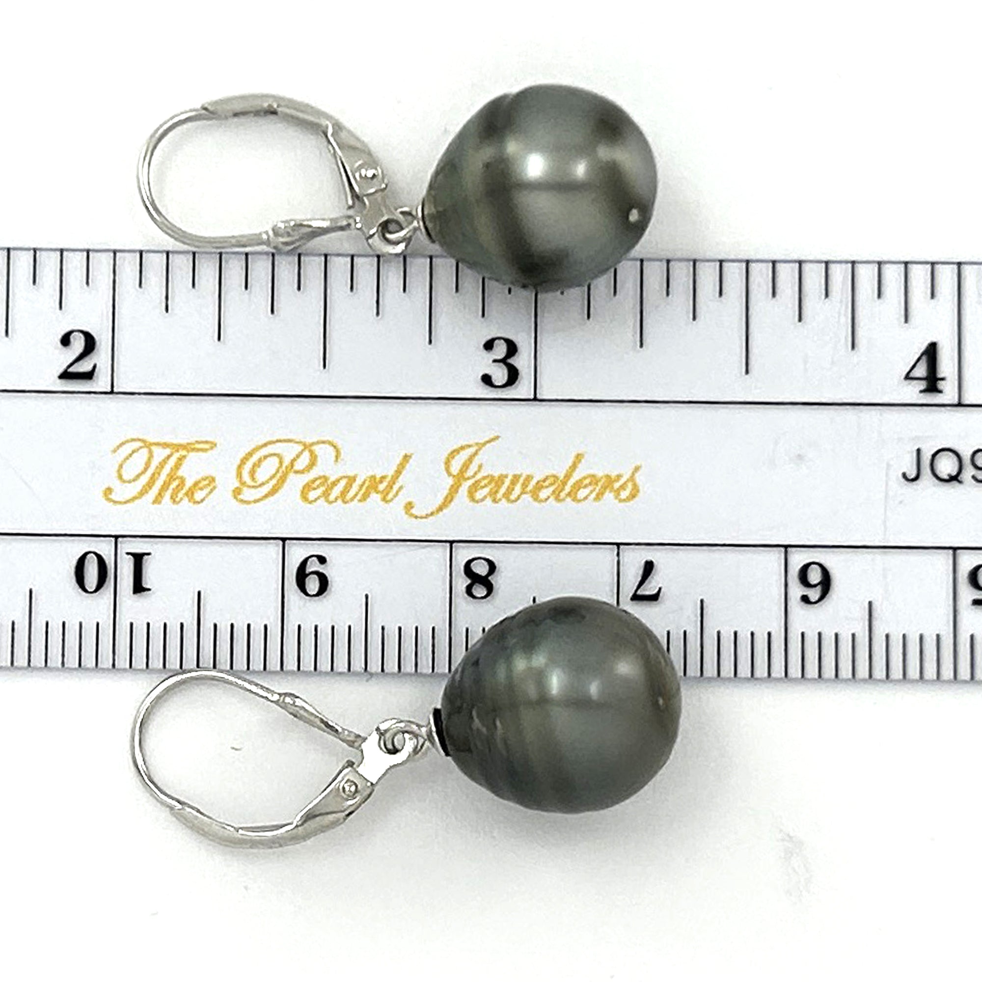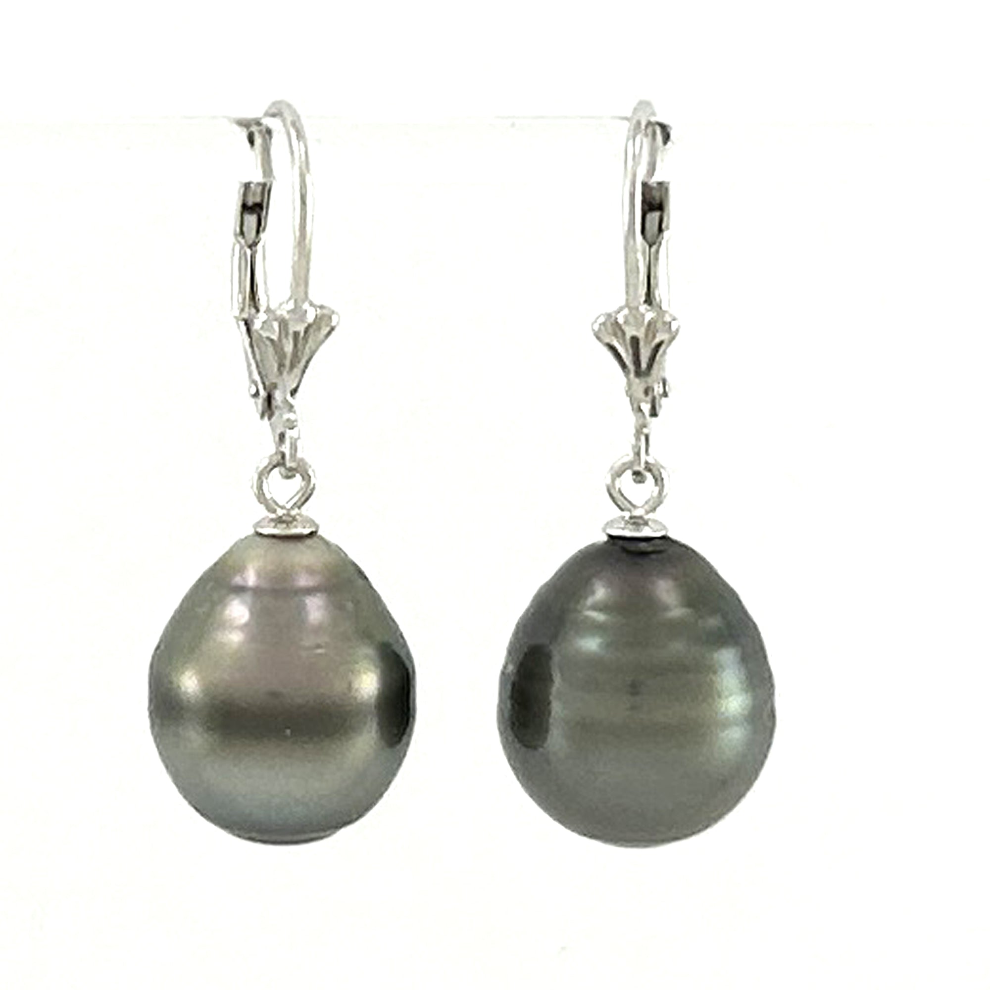 Rich black baroque Tahitian pearls swing gracefully from polished sterling silver leverbacks, designed for comfort and dependable daily wear.