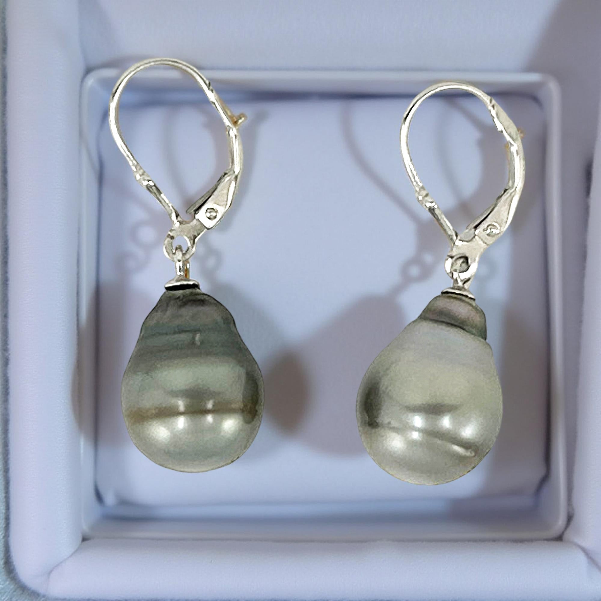 Organic 12 mm baroque Tahitian pearls swing from secure sterling silver leverbacks for a dramatic statement, designed for comfort and dependable daily wear.