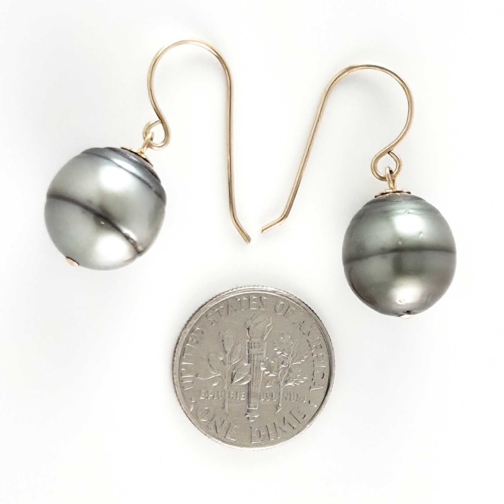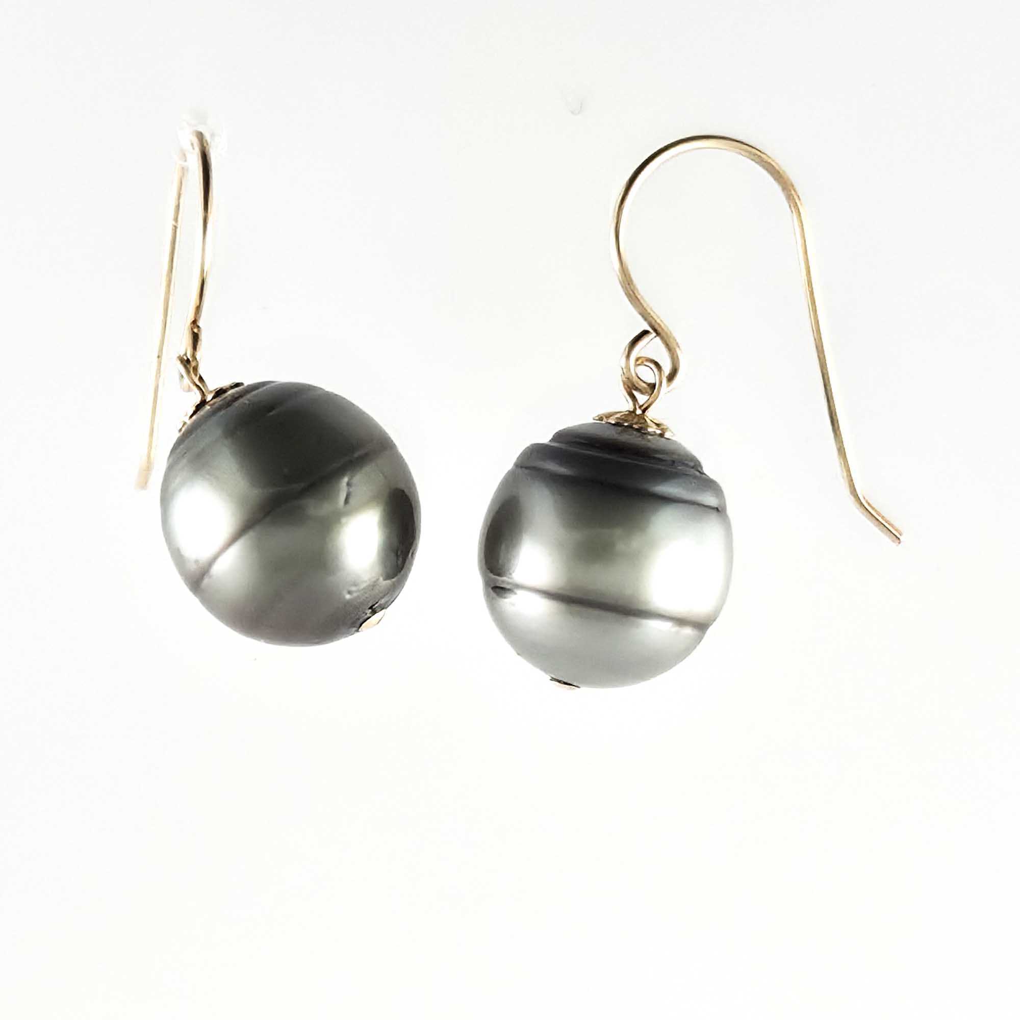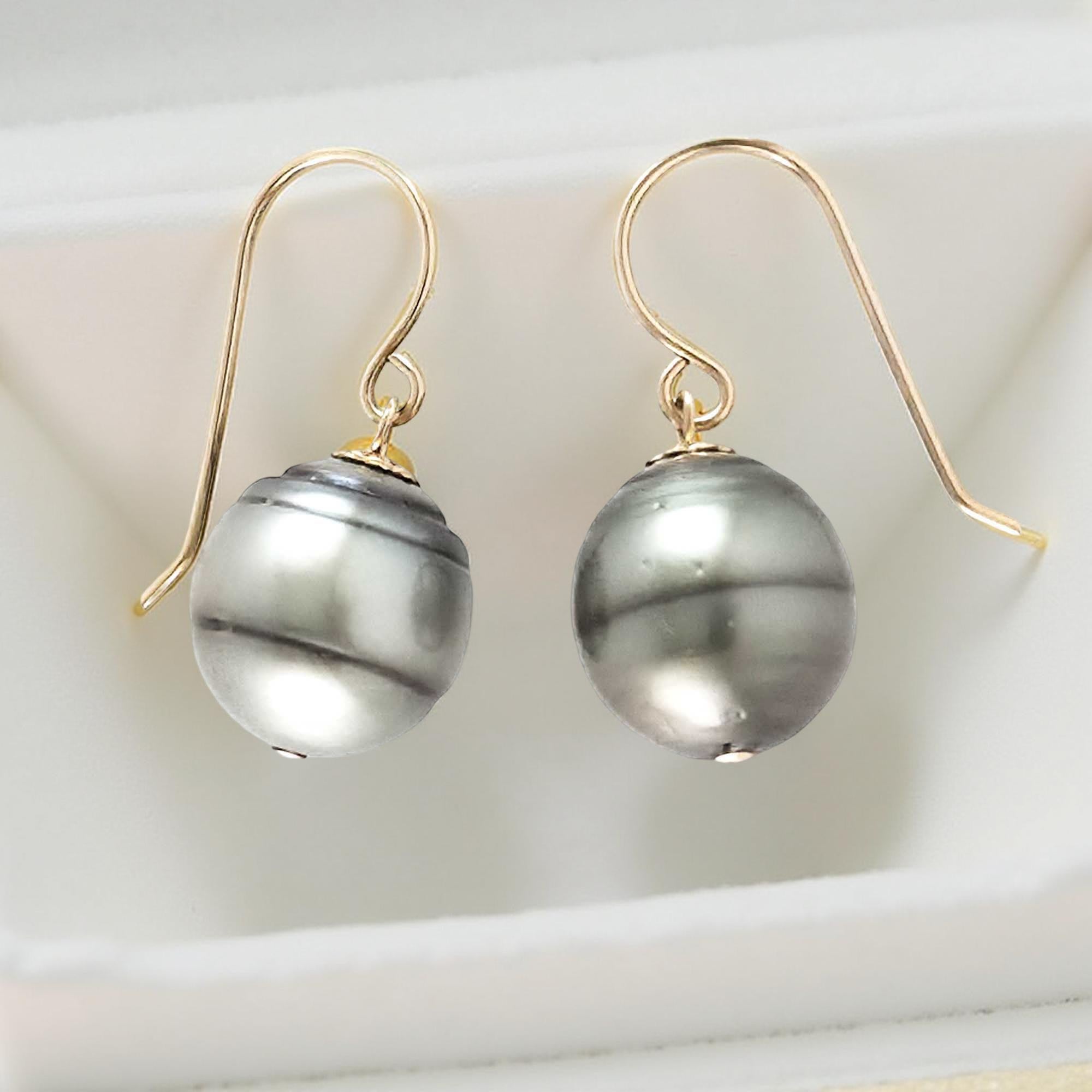 Unique baroque Tahitian pearls dangle from elegant gold-filled fish-hook settings, designed for comfort and dependable daily wear.