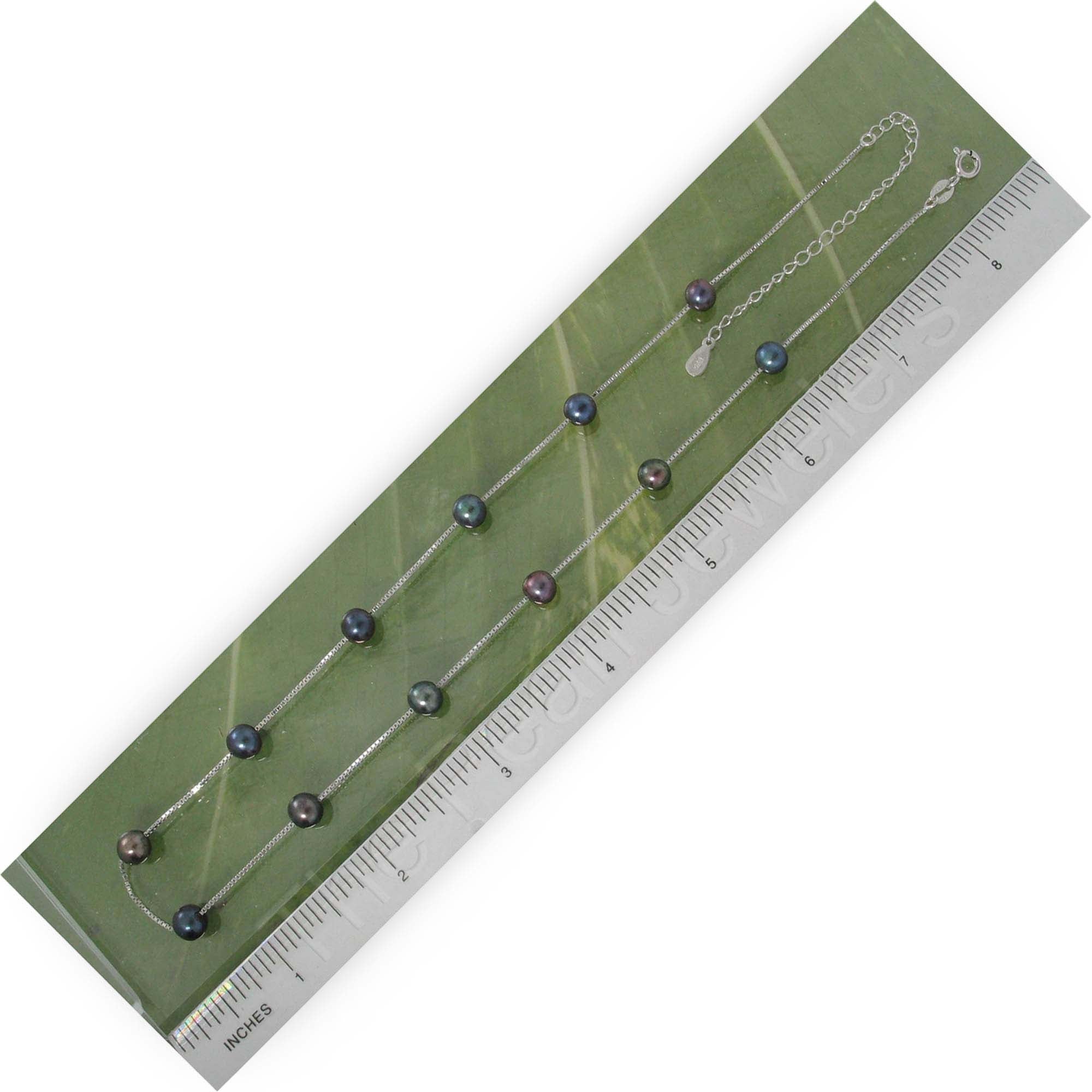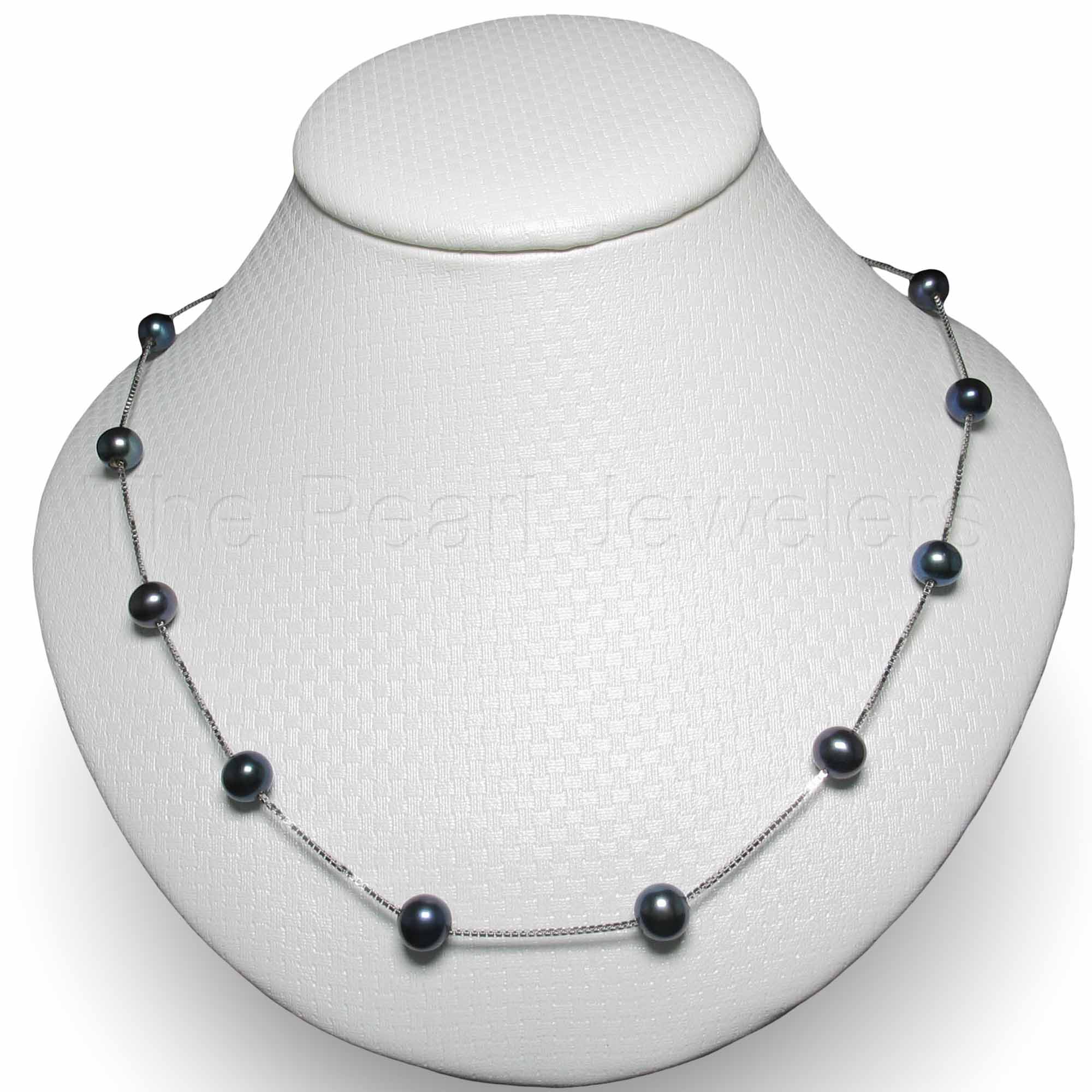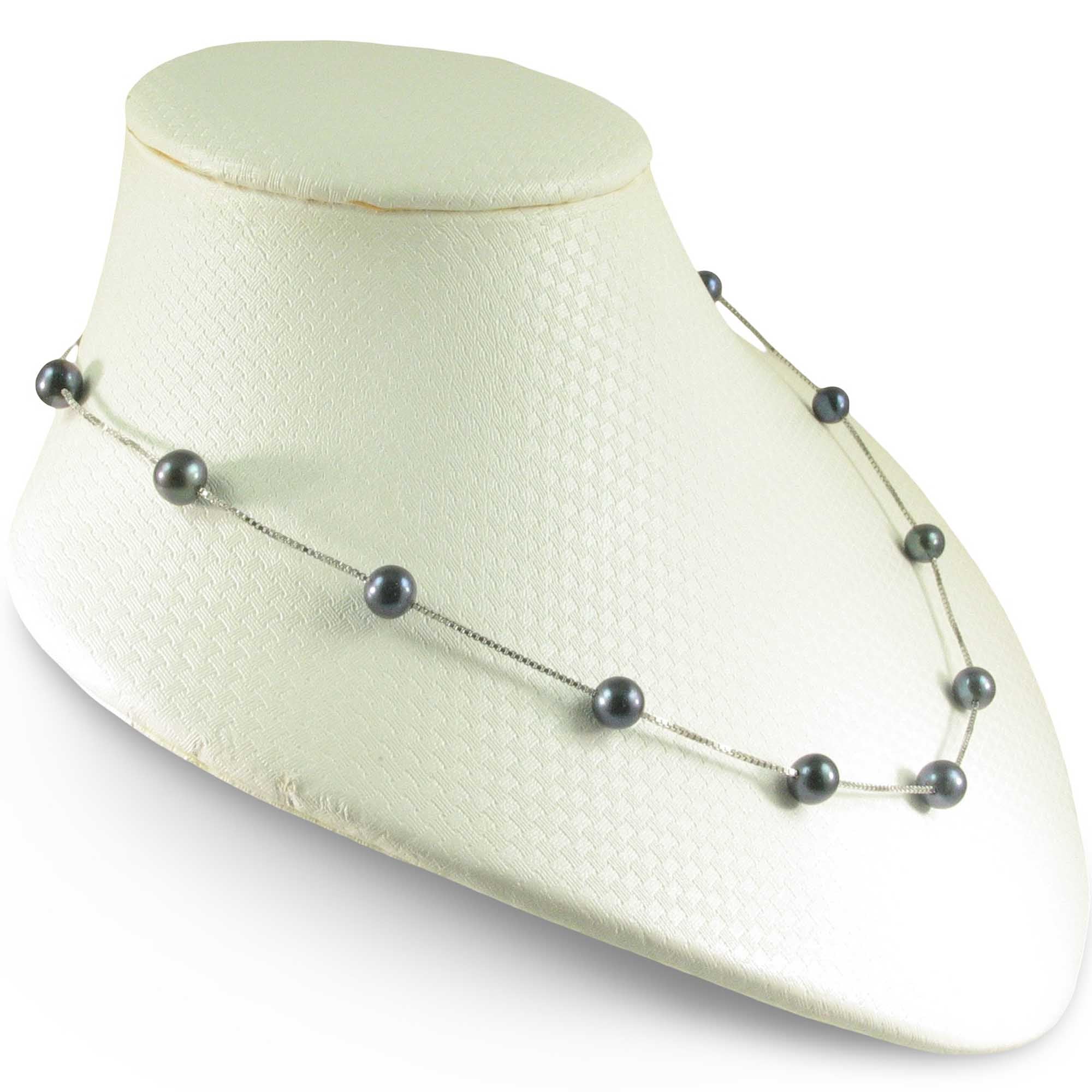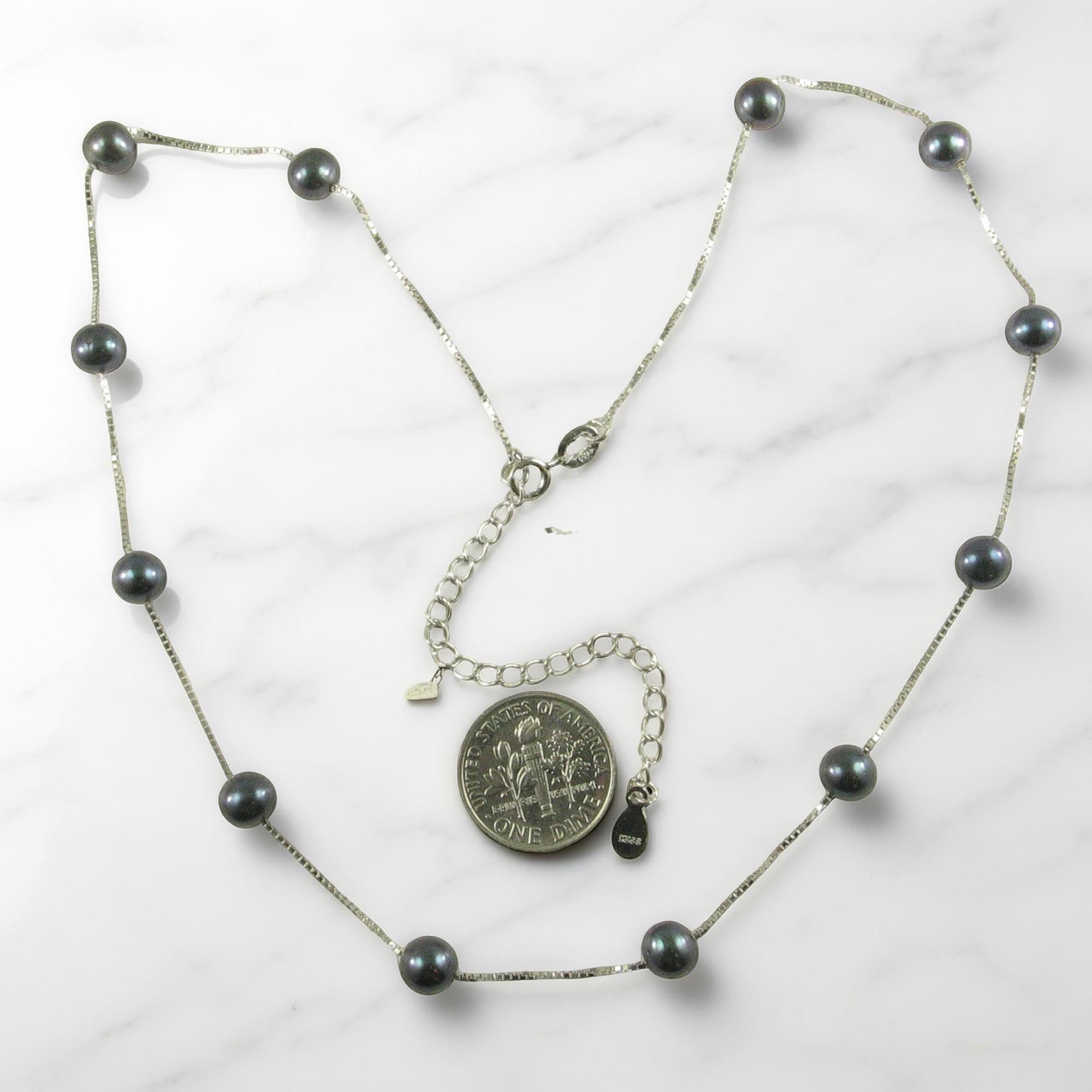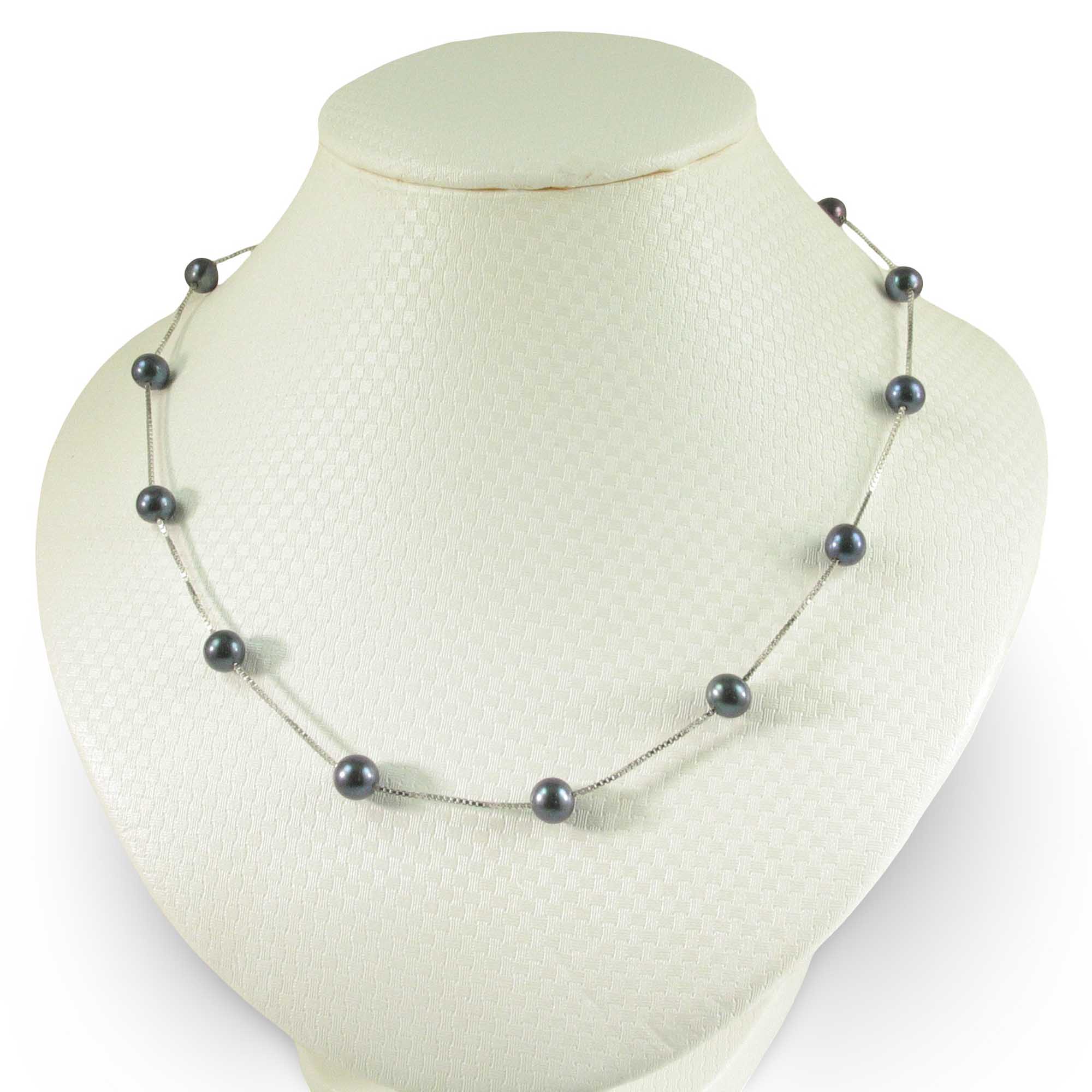 π Twelve black freshwater pearls shimmer on a handcrafted sterling silver chain.