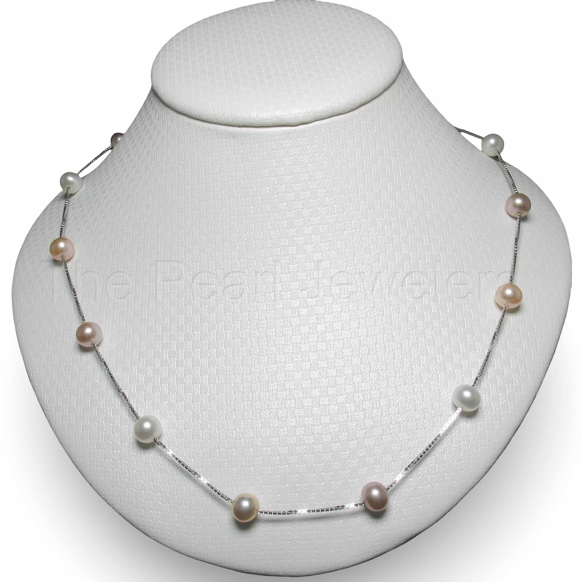 Solid Silver .925 Pink & White Pearl Tin-Cup Necklace