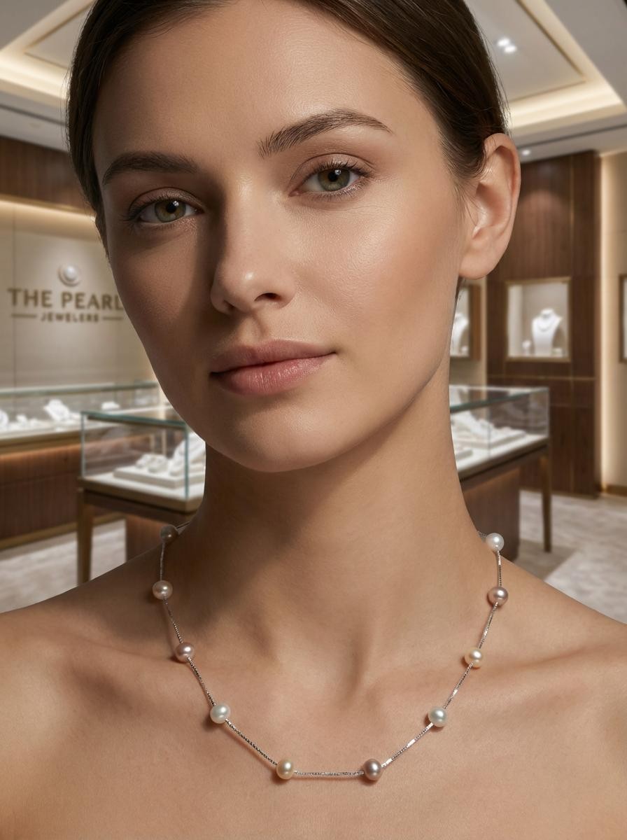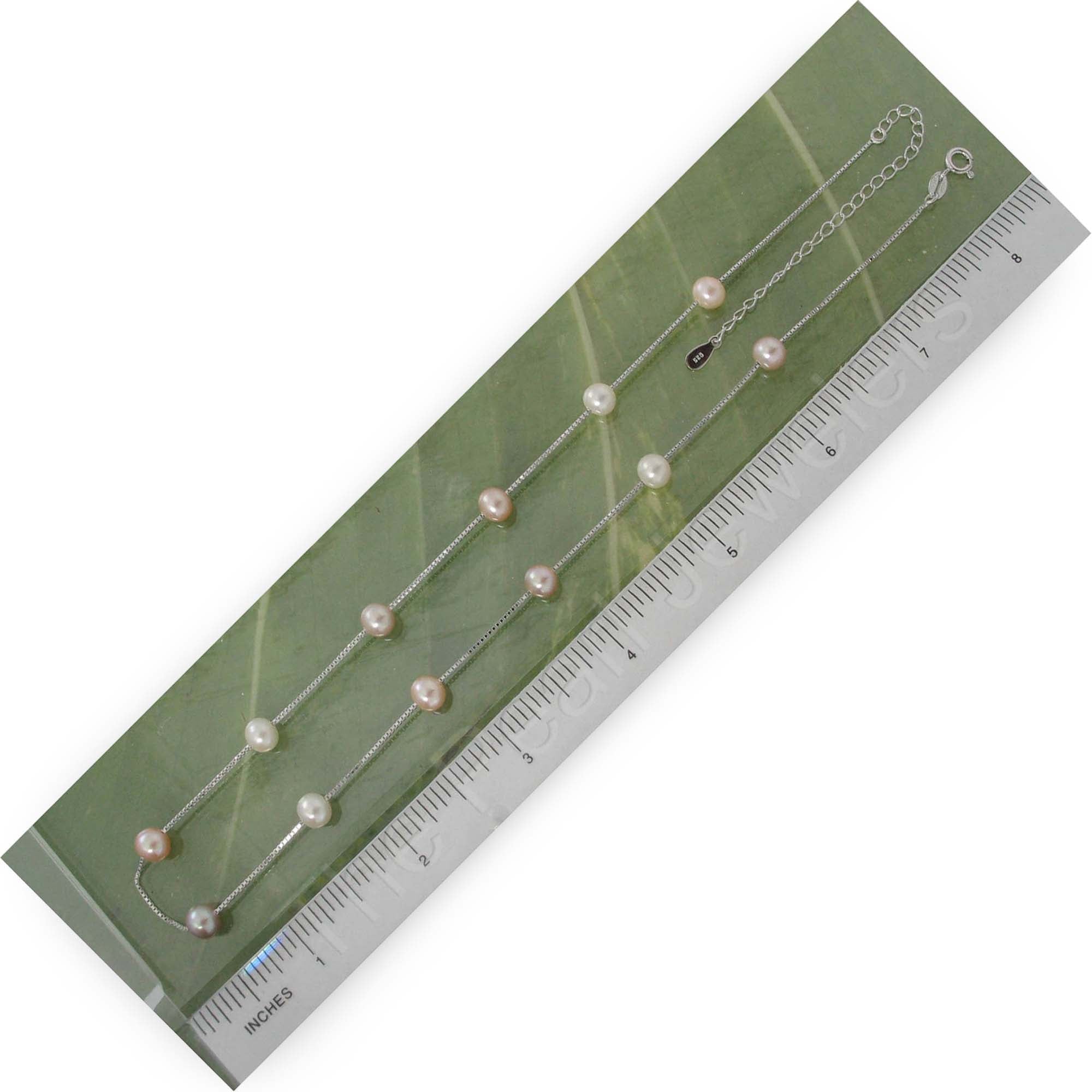 πŸ’š Soft pink and white pearls alternate along a sleek sterling silver chain.