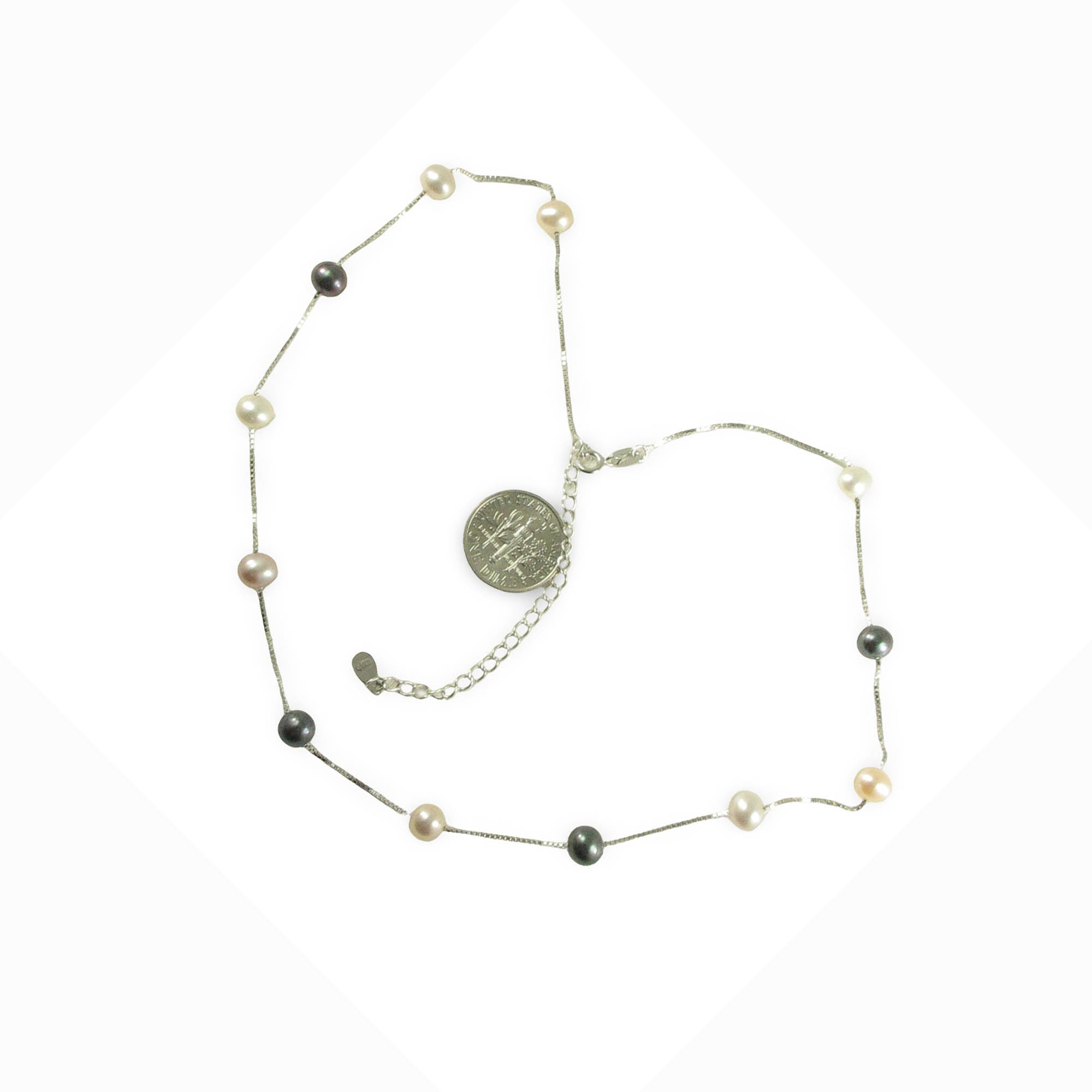 Solid Silver .925 Pink, Black & White Pearl Tin-Cup Necklace