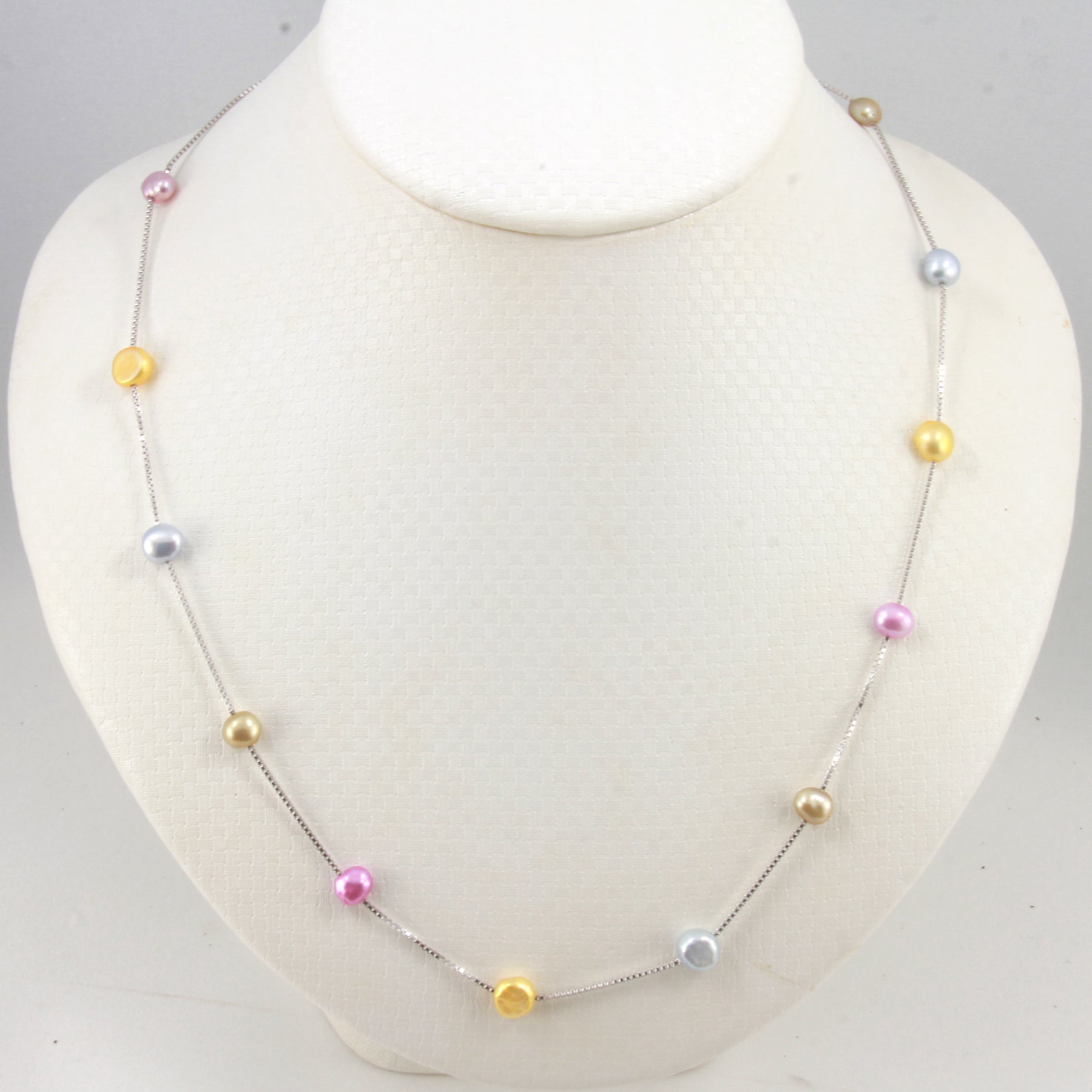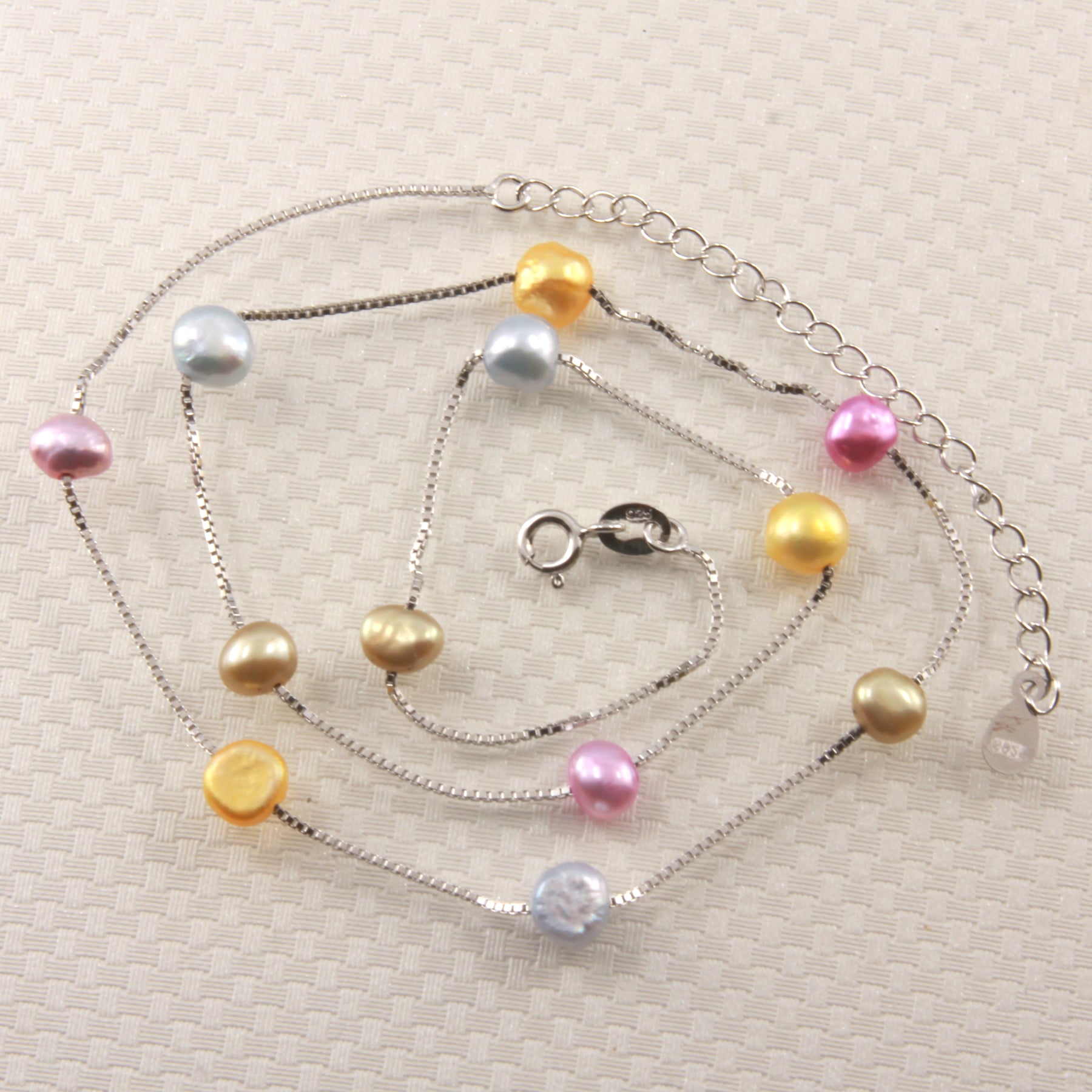 π Twelve baby baroque pearls in a mix of natural colors add playful shine.