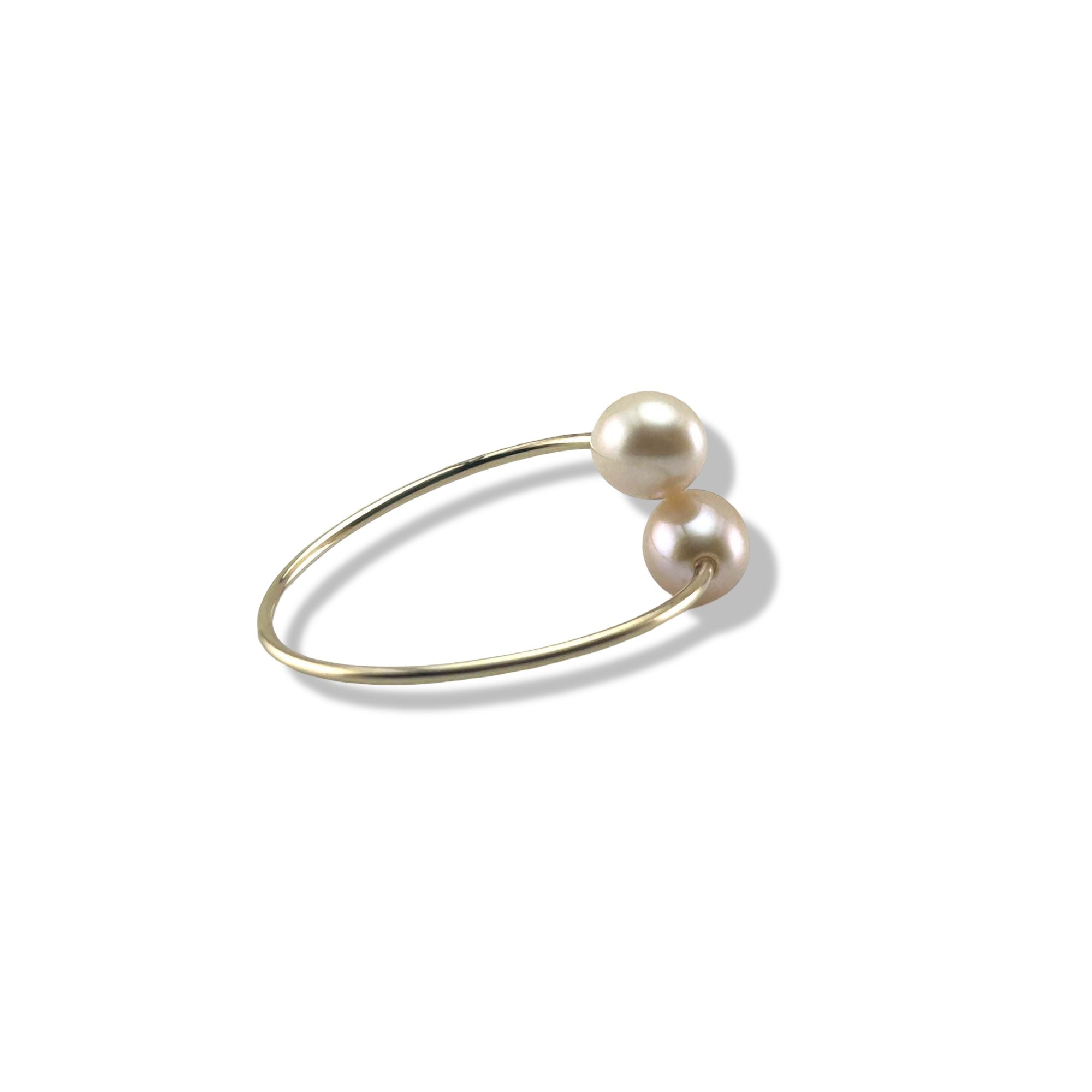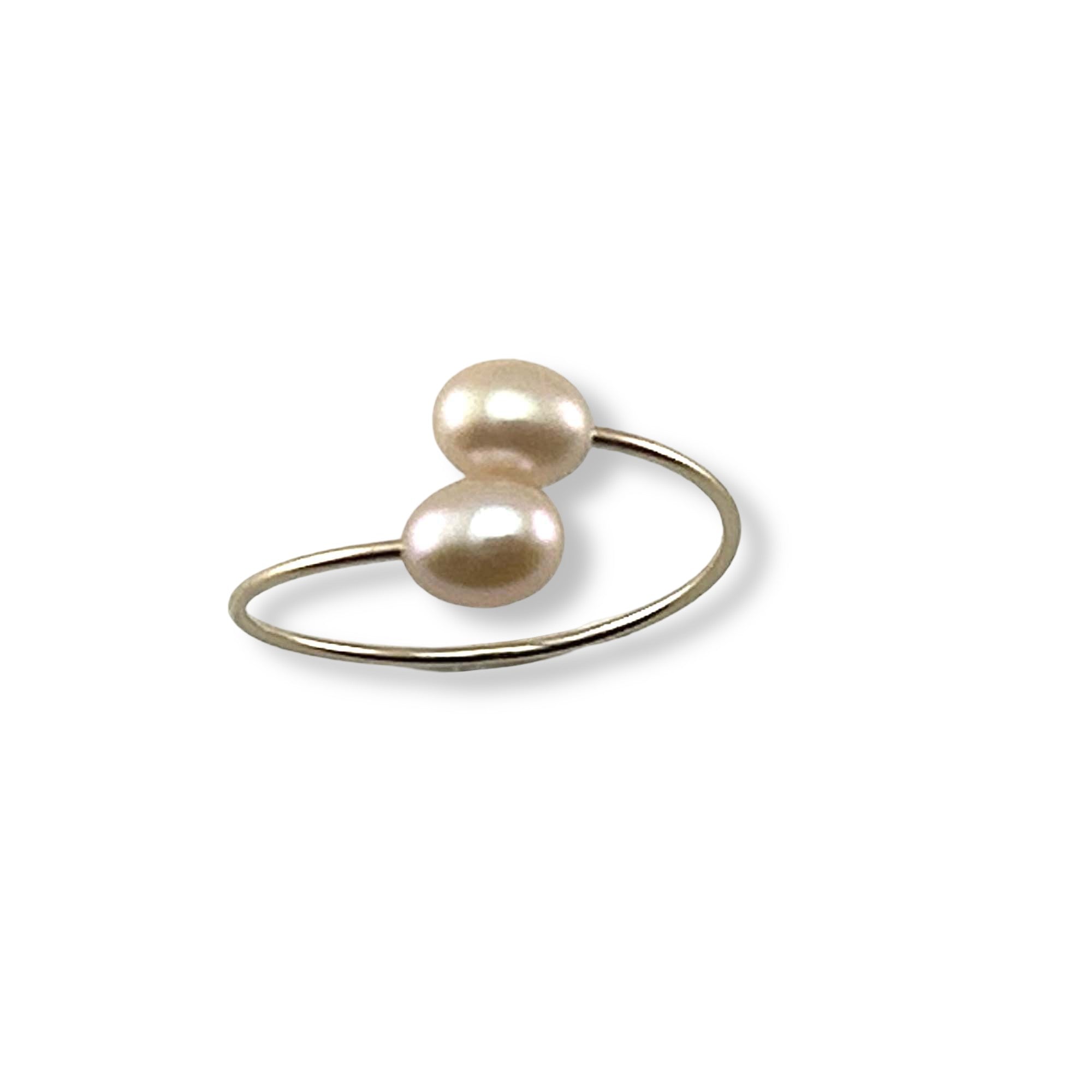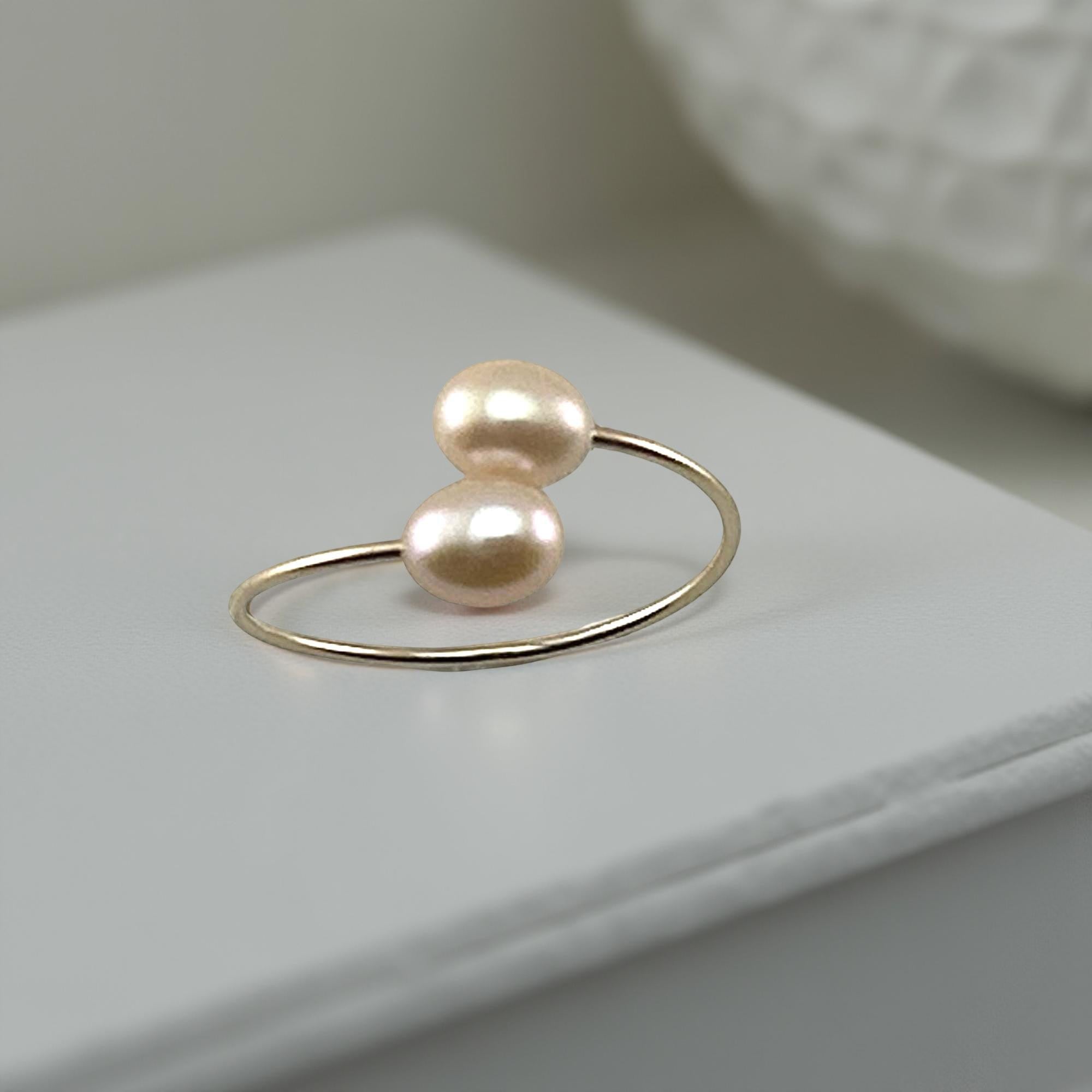 A feminine and lightweight ring featuring two 4–5 mm pink pearls on an open gold-filled band. Elegant, minimal, and perfect for stacking.