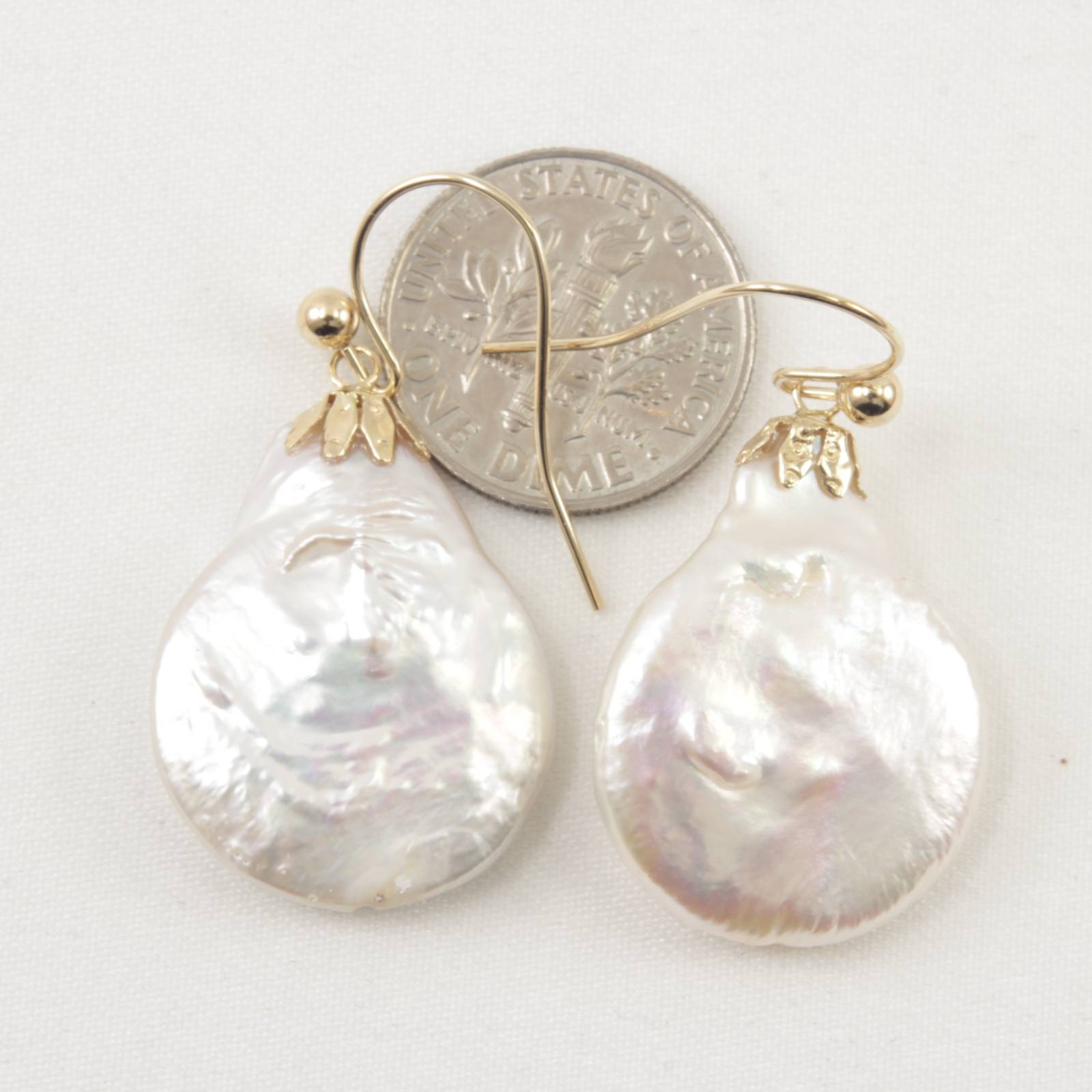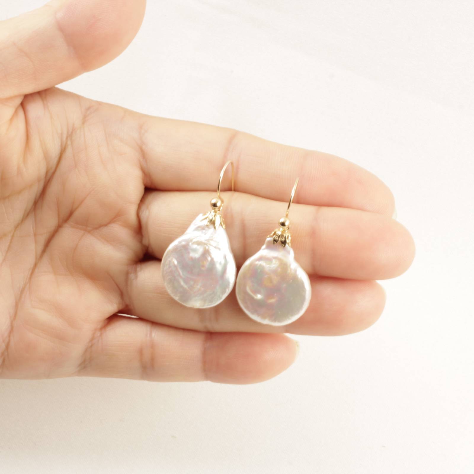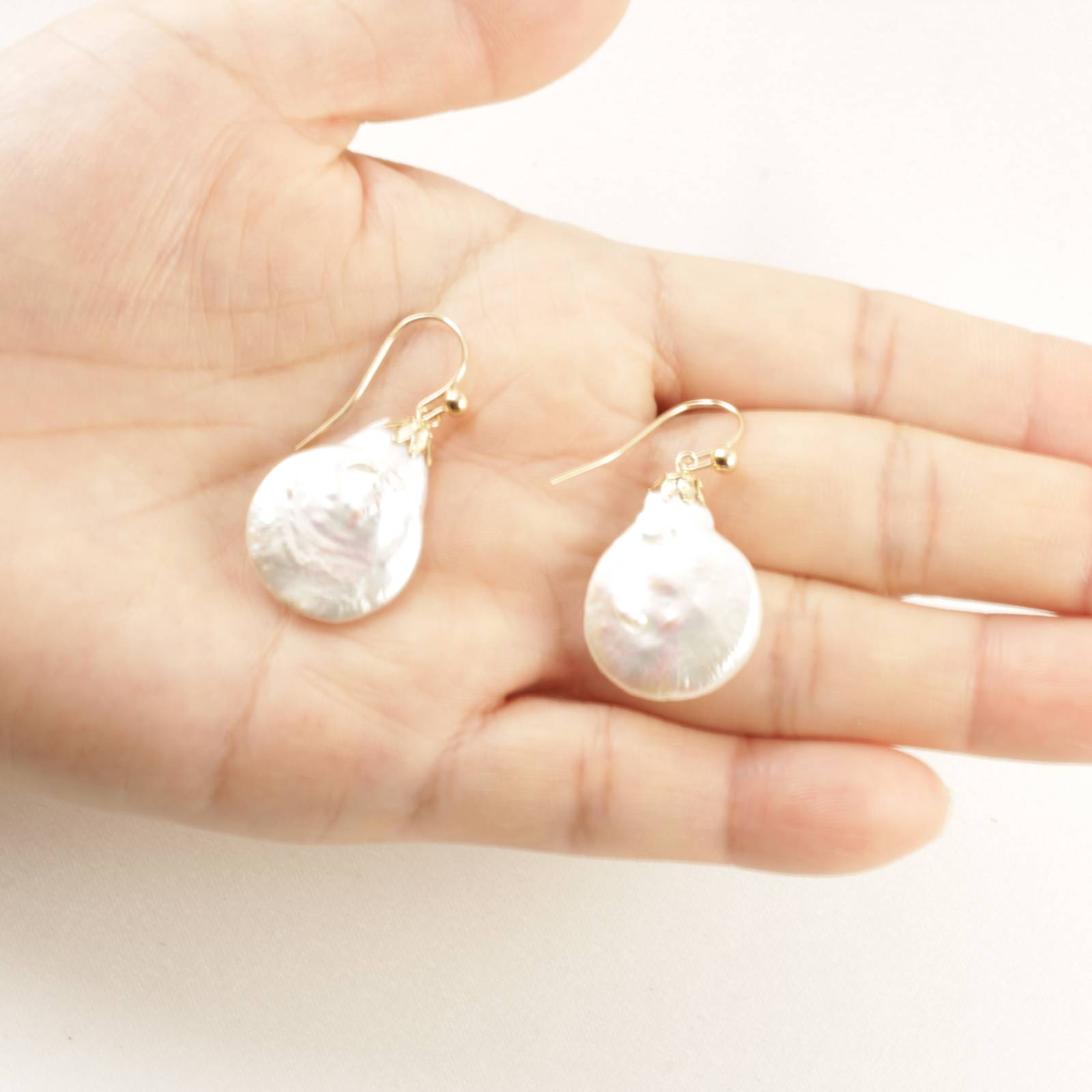 **Premium Baroque Coin Pearl Fishhook Dangle Earrings**