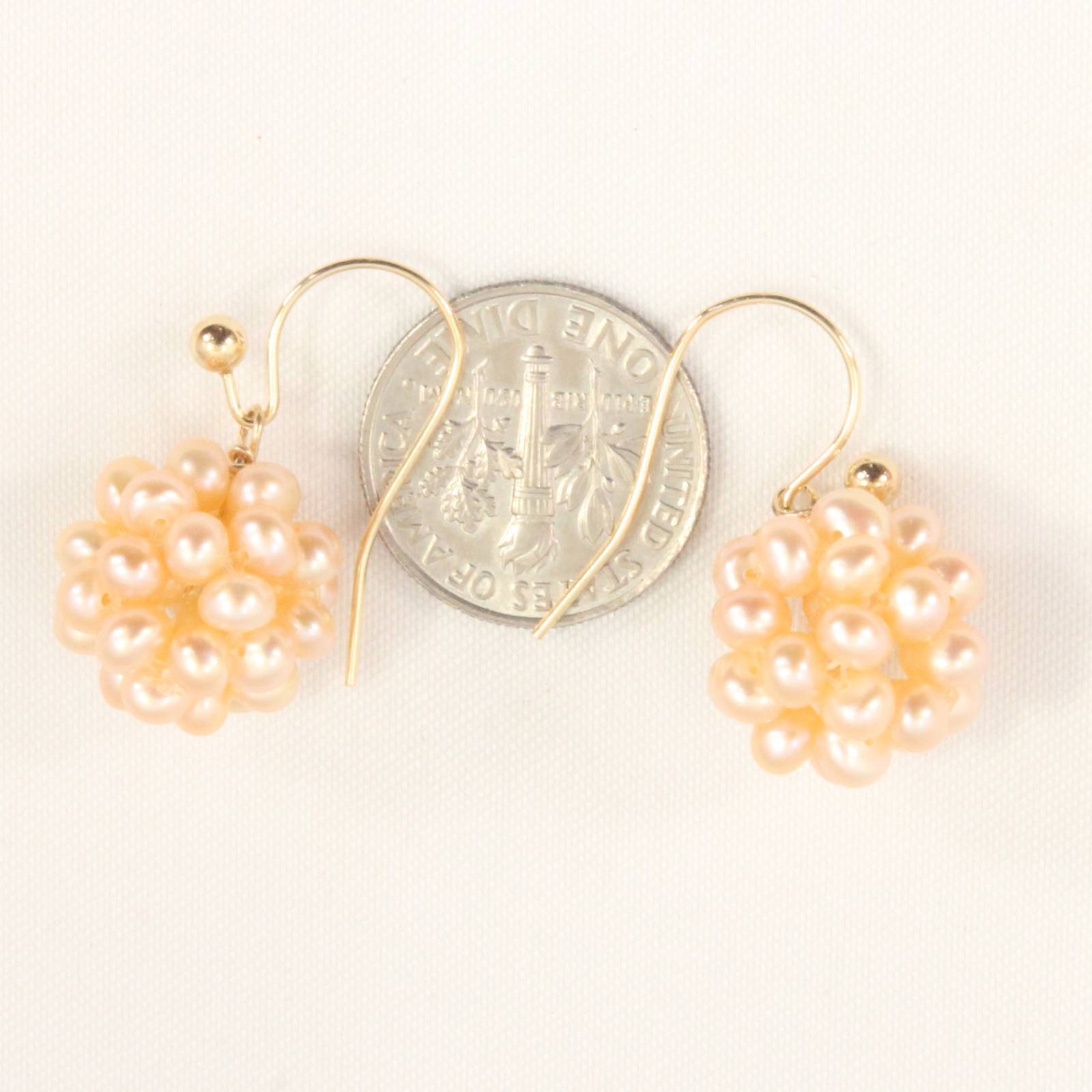**14K Yellow Gold Fish Hook Pink Pearl Ball Earrings (13mm)**