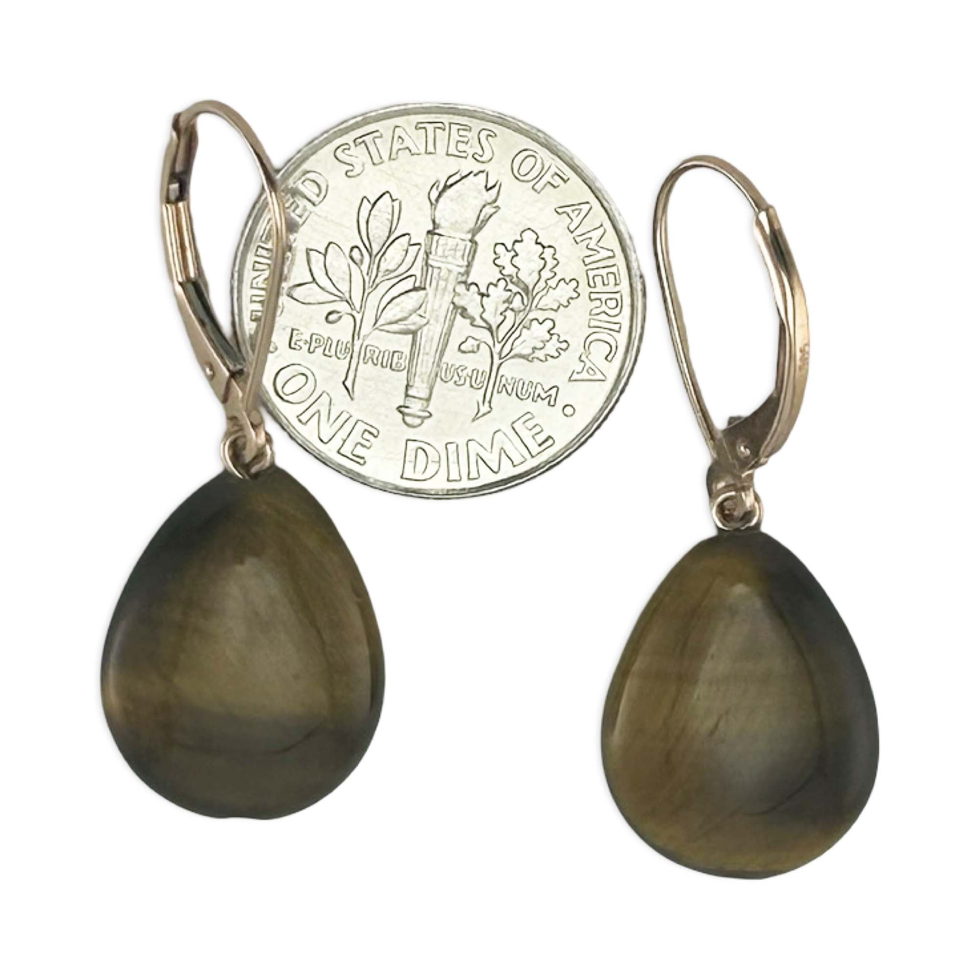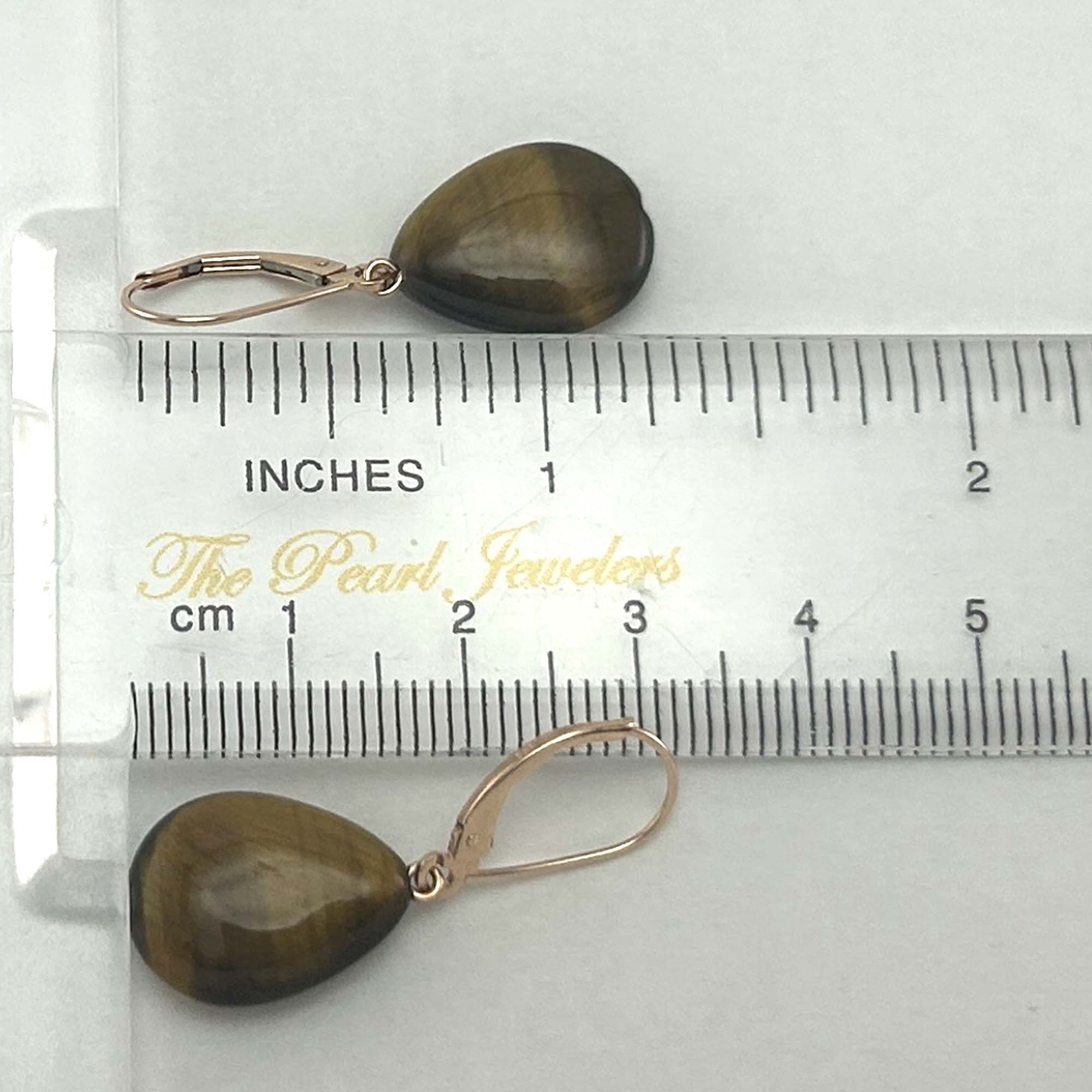 14kt Solid Rose Gold Leverback Genuine Brown Tiger-Eye Dangle Earrings
