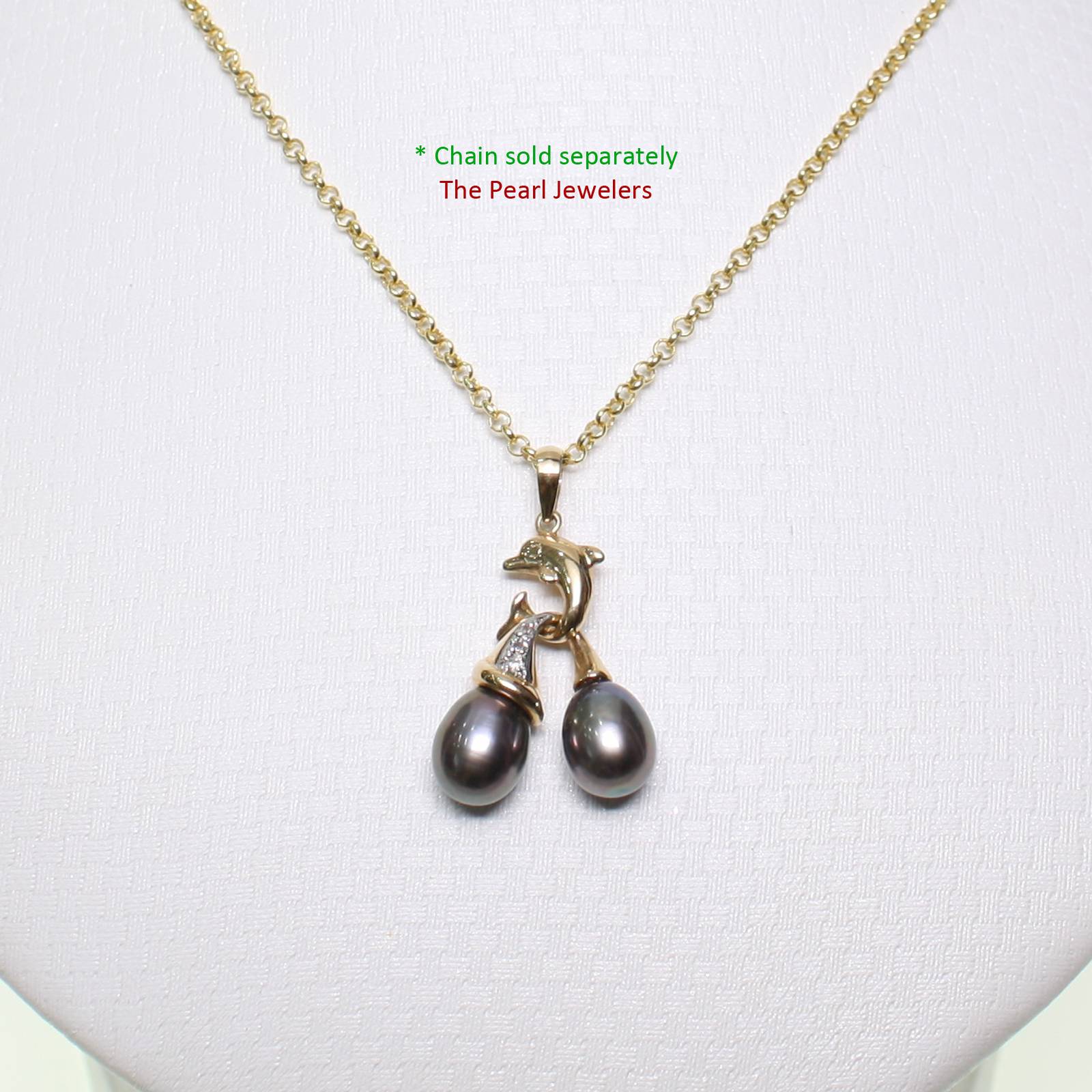 **Dolphin Diamond Pendant with 2 Black Pearls ā 14k Yellow Gold**