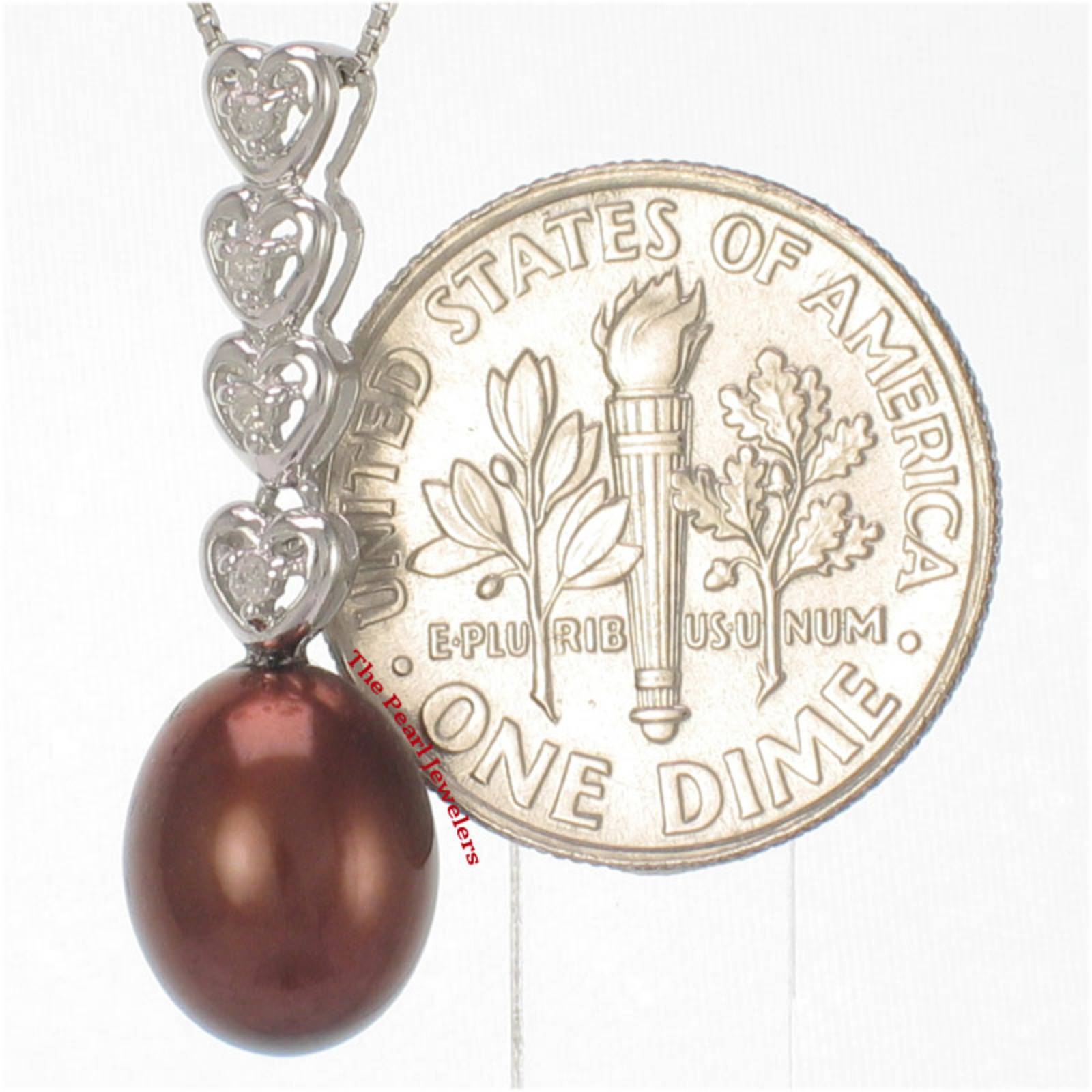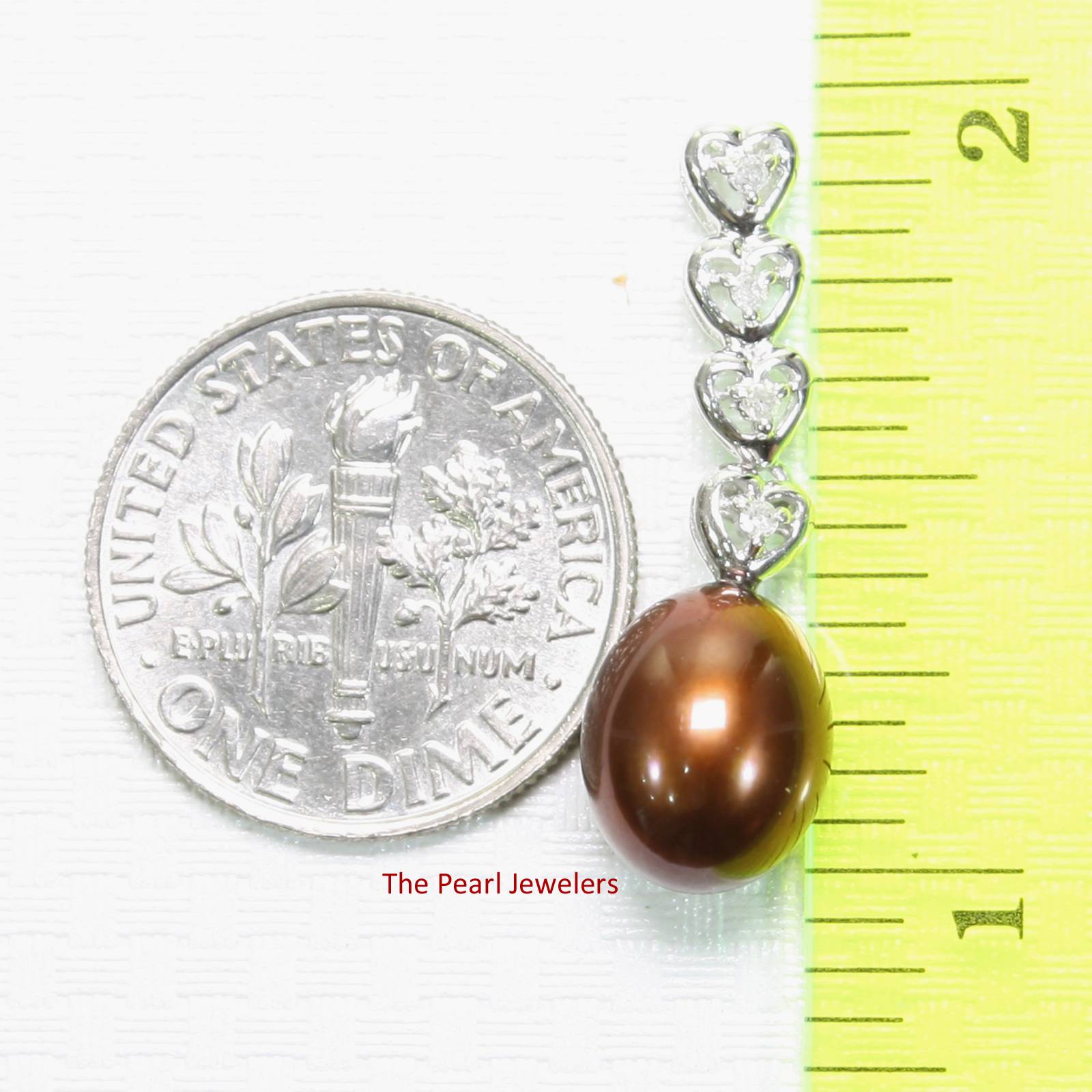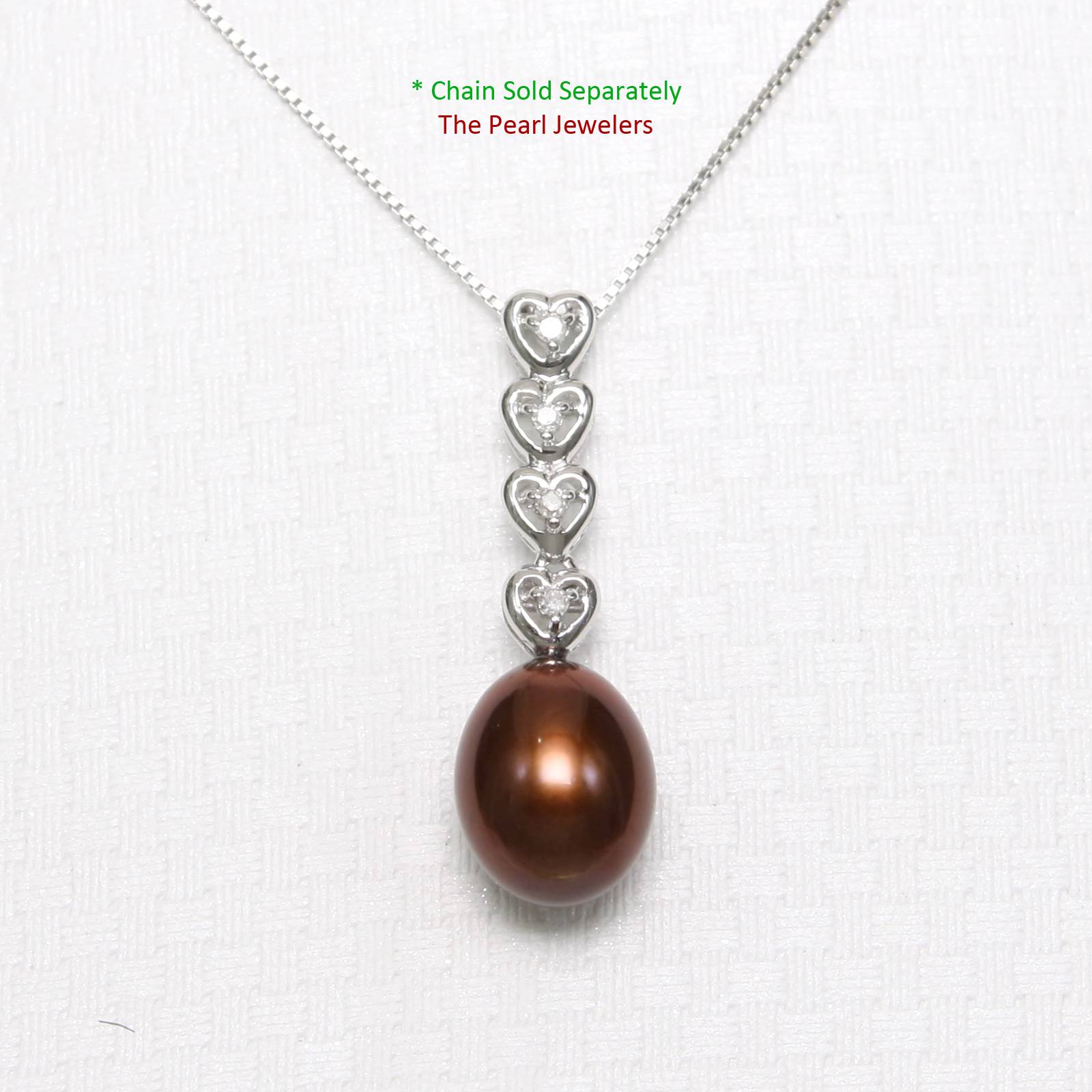 **Chocolate Pearl Pendant – 14k White Gold Diamond Hearts Design**