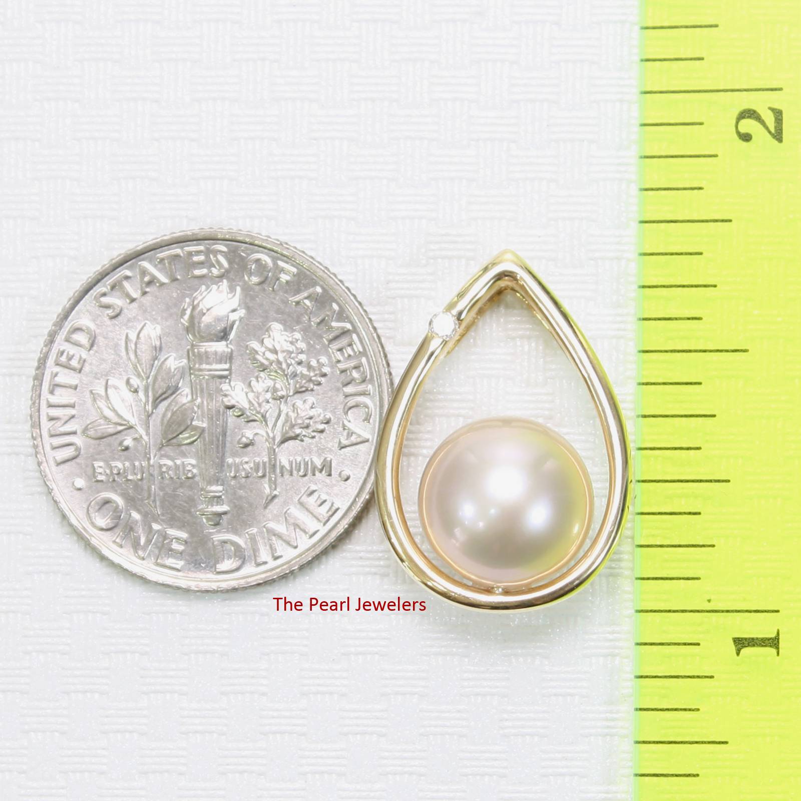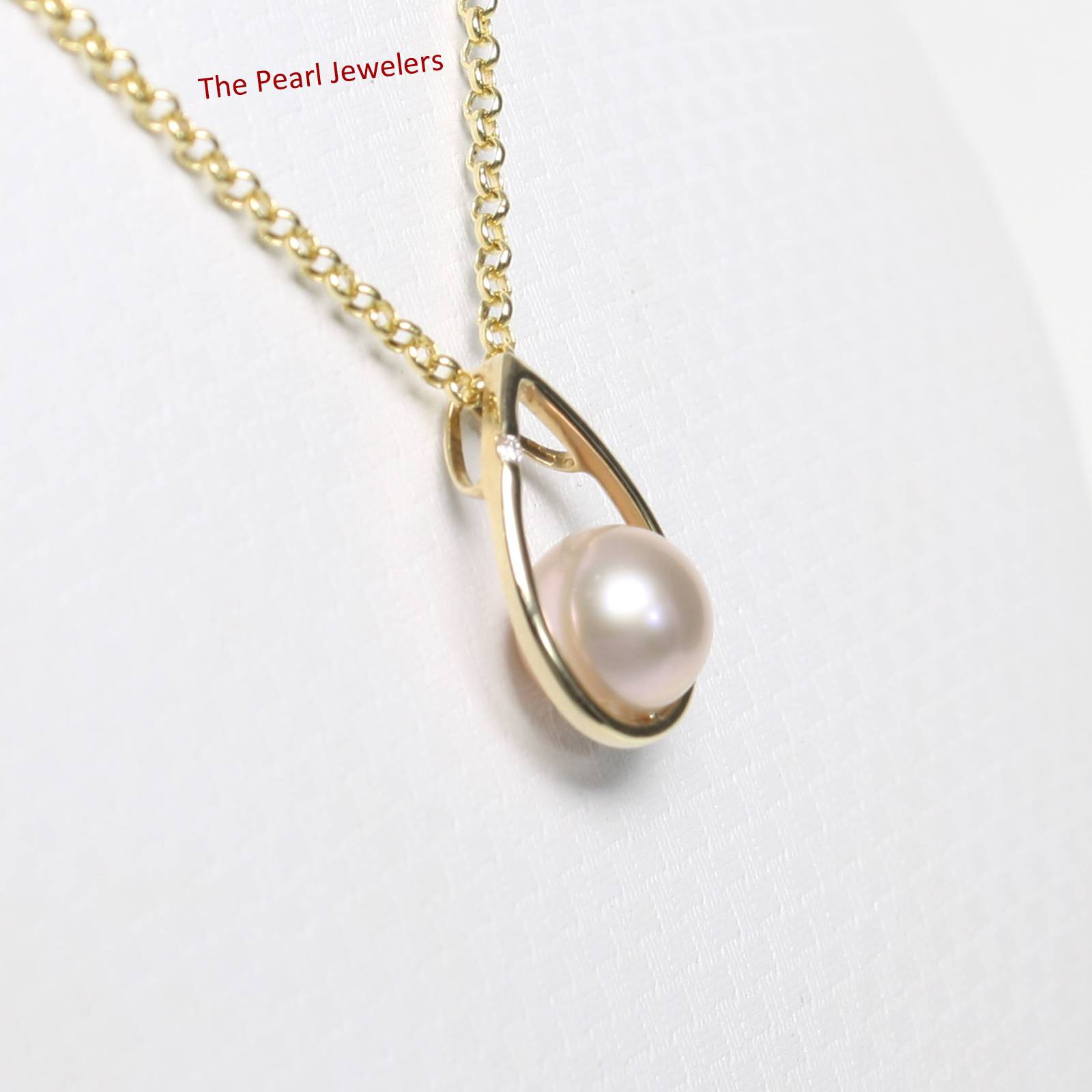 This 8β8.5mm lavender-pink pearl features a polished 14k yellow gold raindrop setting and one delicate diamond at the top.