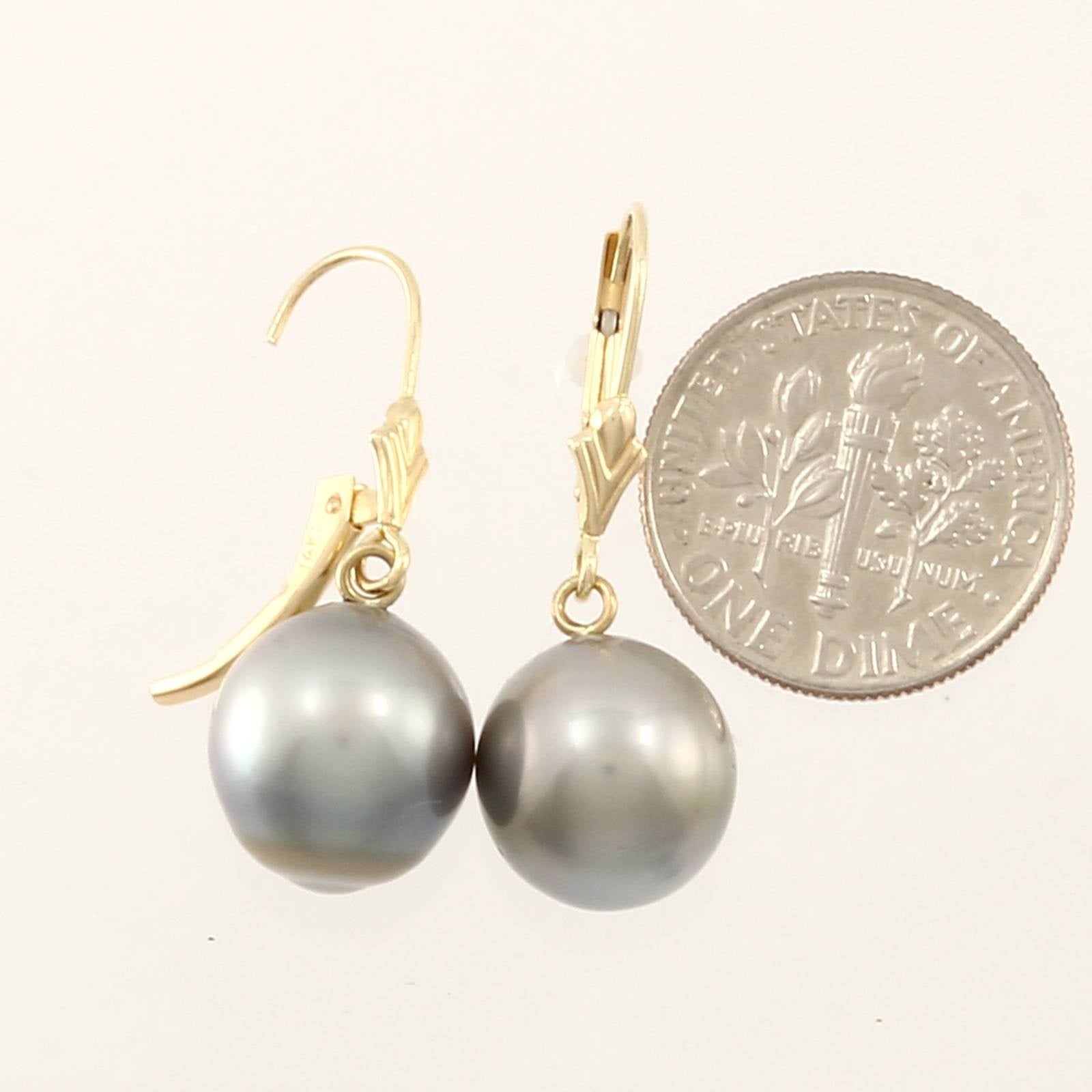 **14k Yellow Gold Gray Tahitian Pearl Leverback Earrings**