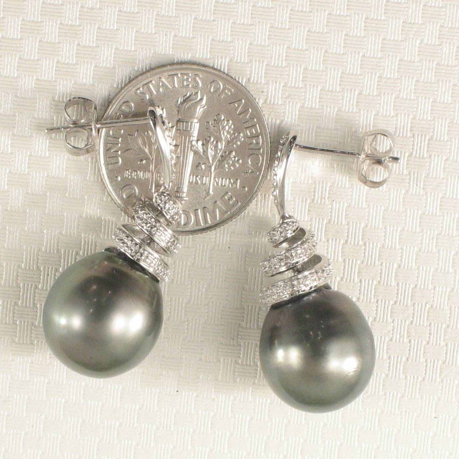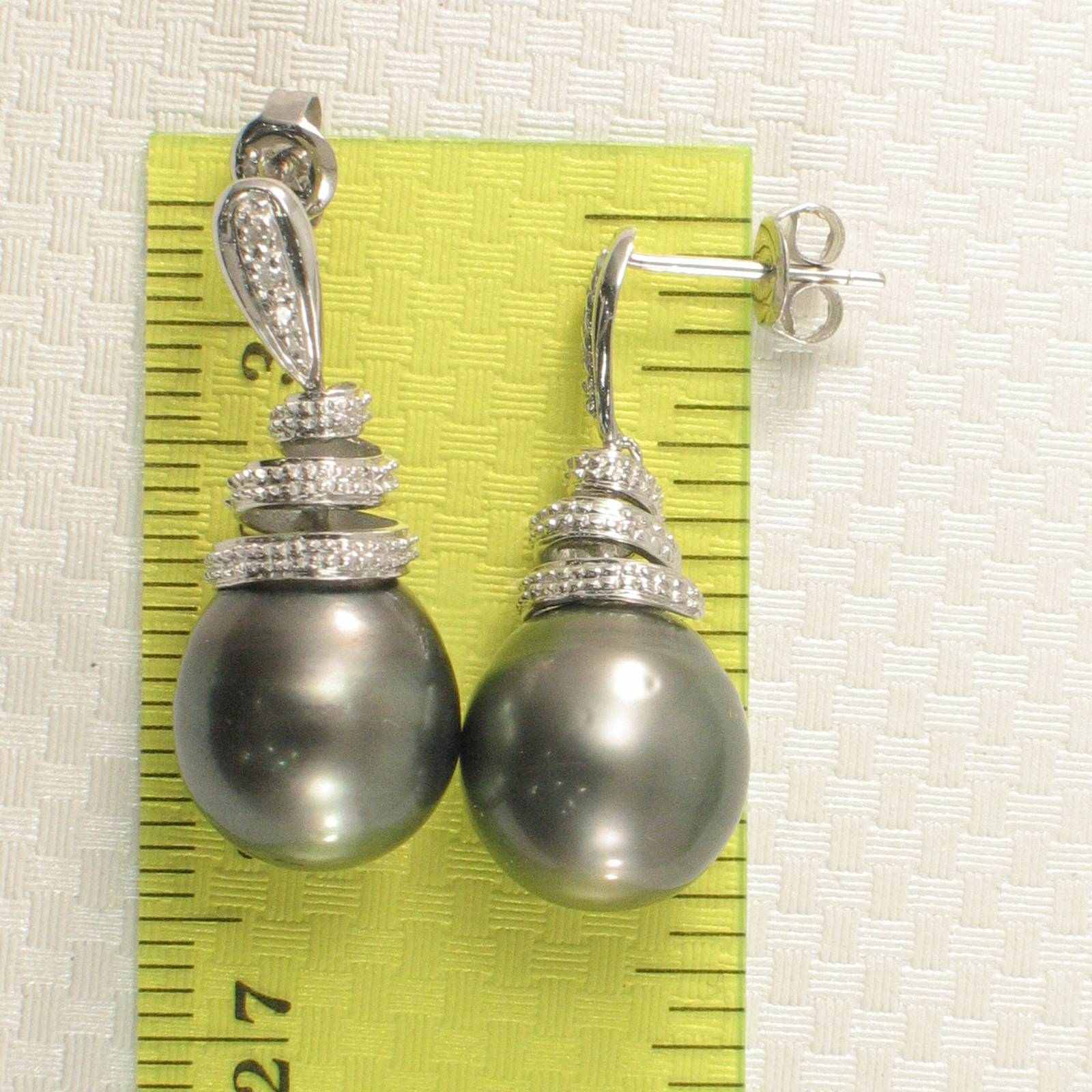 14k White Gold Black Tahitian Pearl Diamond Dangle Earrings