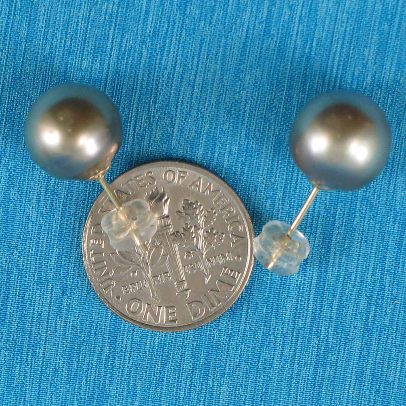 **Silvery Gray Tahitian Pearl Stud Earrings ā 14k Yellow Gold**