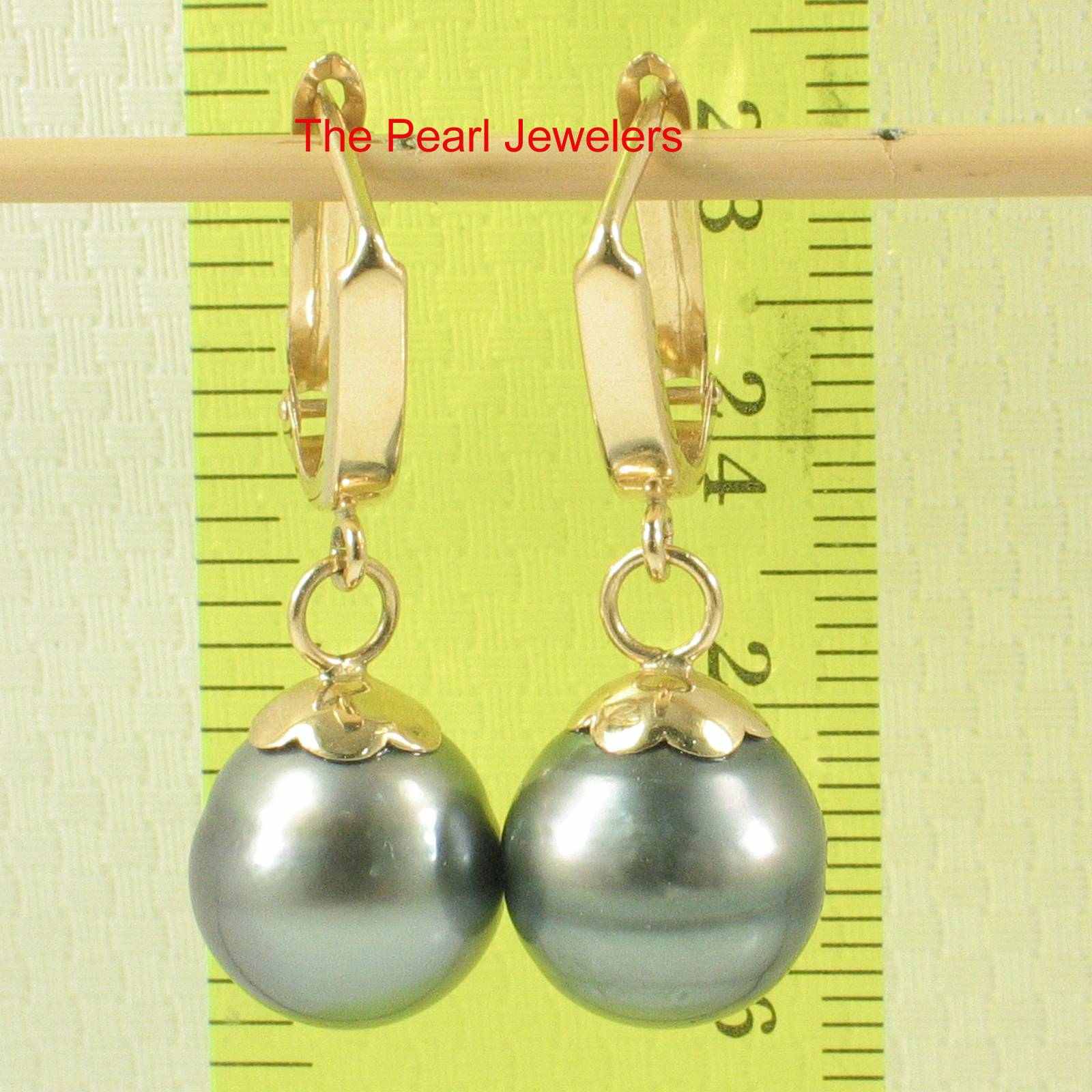 **Natural Black Tahitian Pearl Euro Back Dangle Earrings ā 14k Yellow Gold**