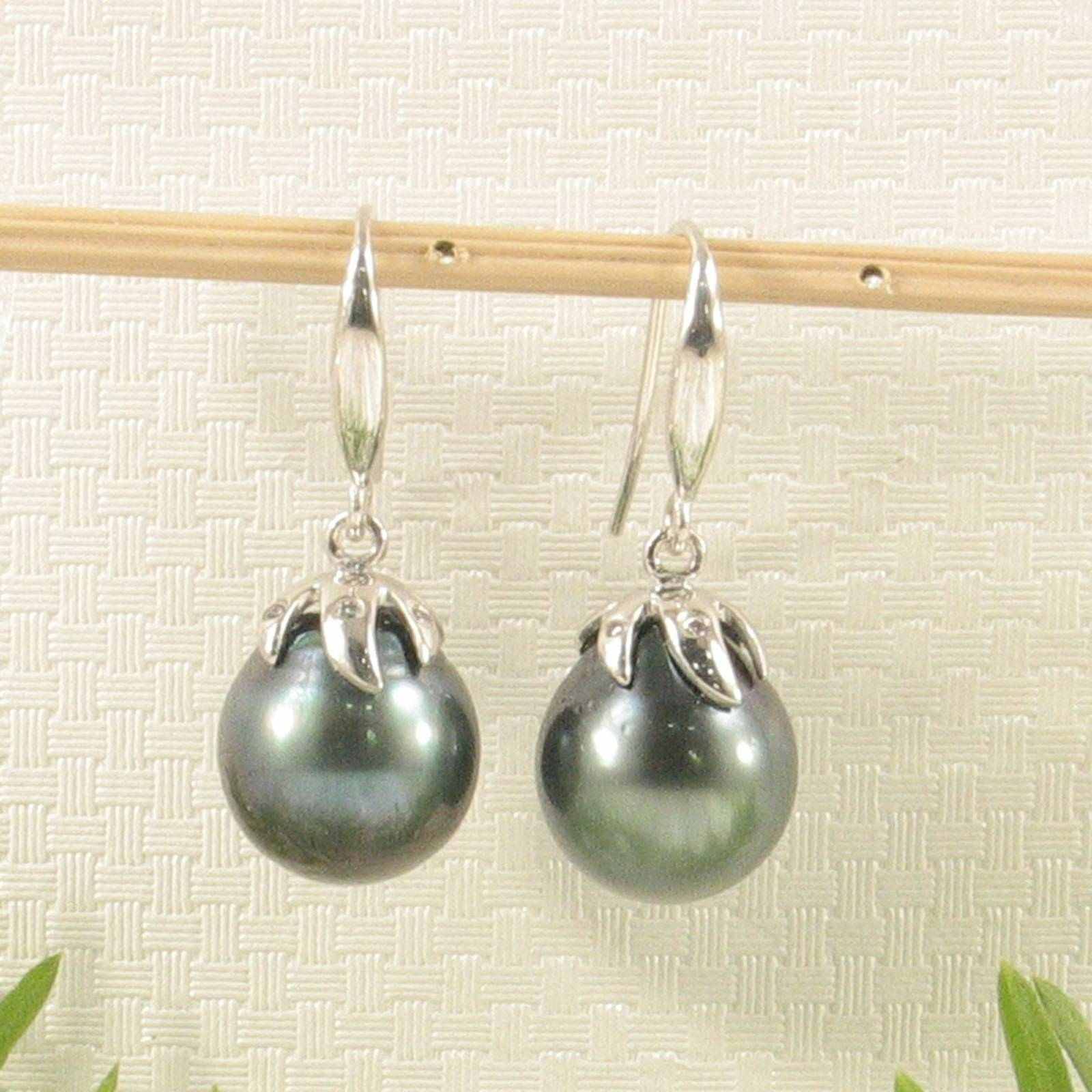 **Genuine Tahitian Pearl & Diamond Hook Earrings ā 14k White Gold**
