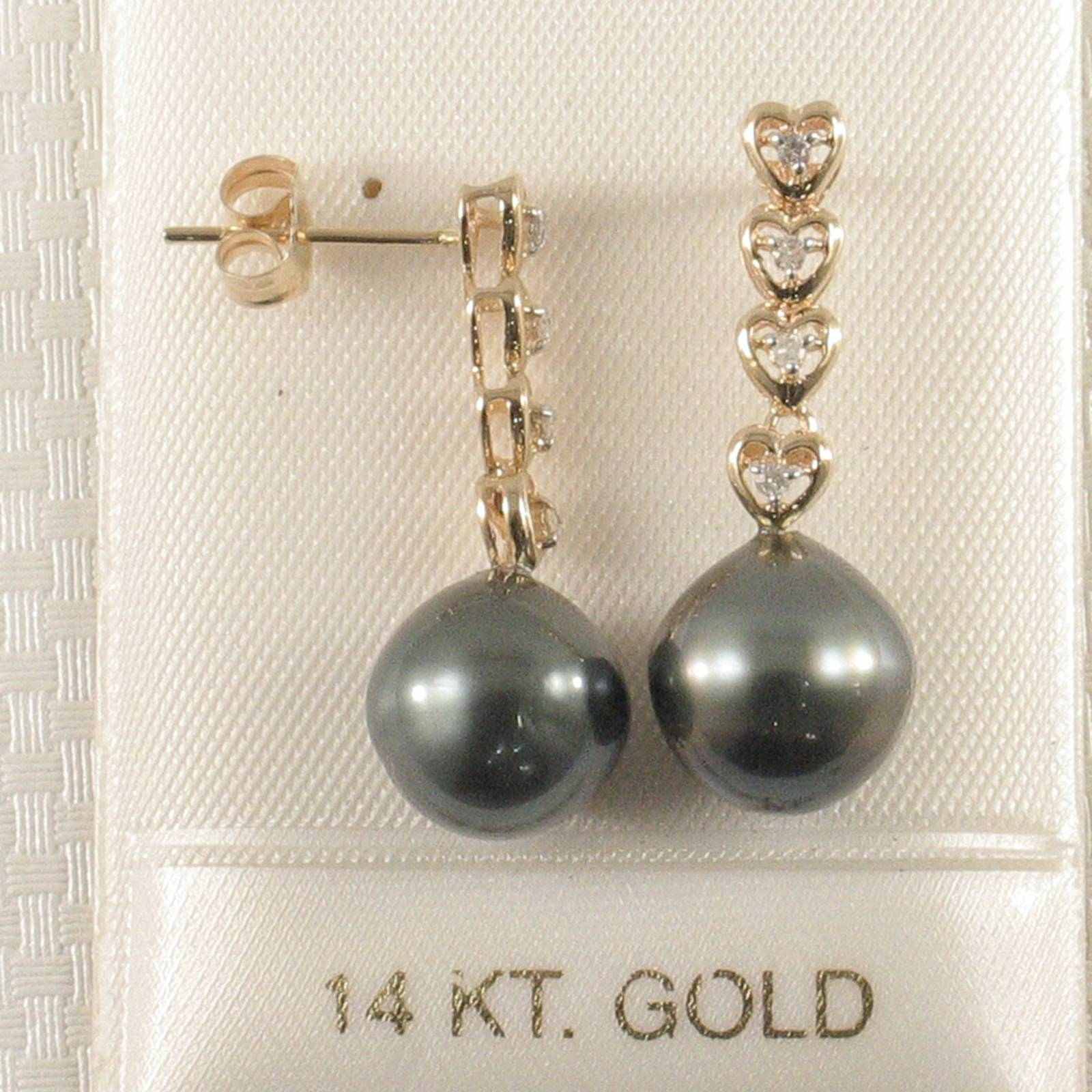 Black Tahitian Pearl & Diamond Heart Dangle Earrings – 14k Yellow Gold