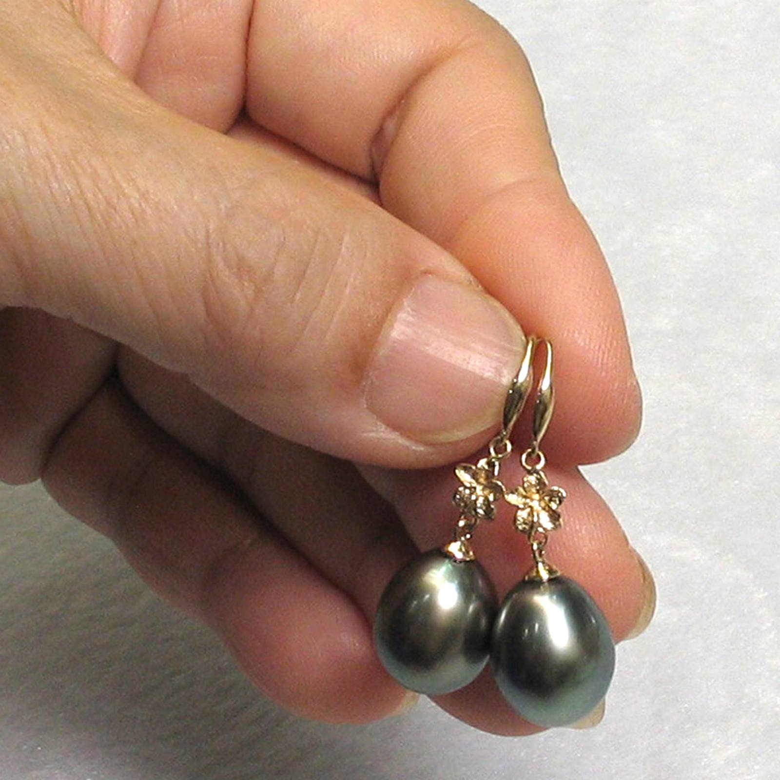 **Traditional Hawaiian Plumeria Baroque Tahitian Pearl Earrings ā 14k Yellow Gold**