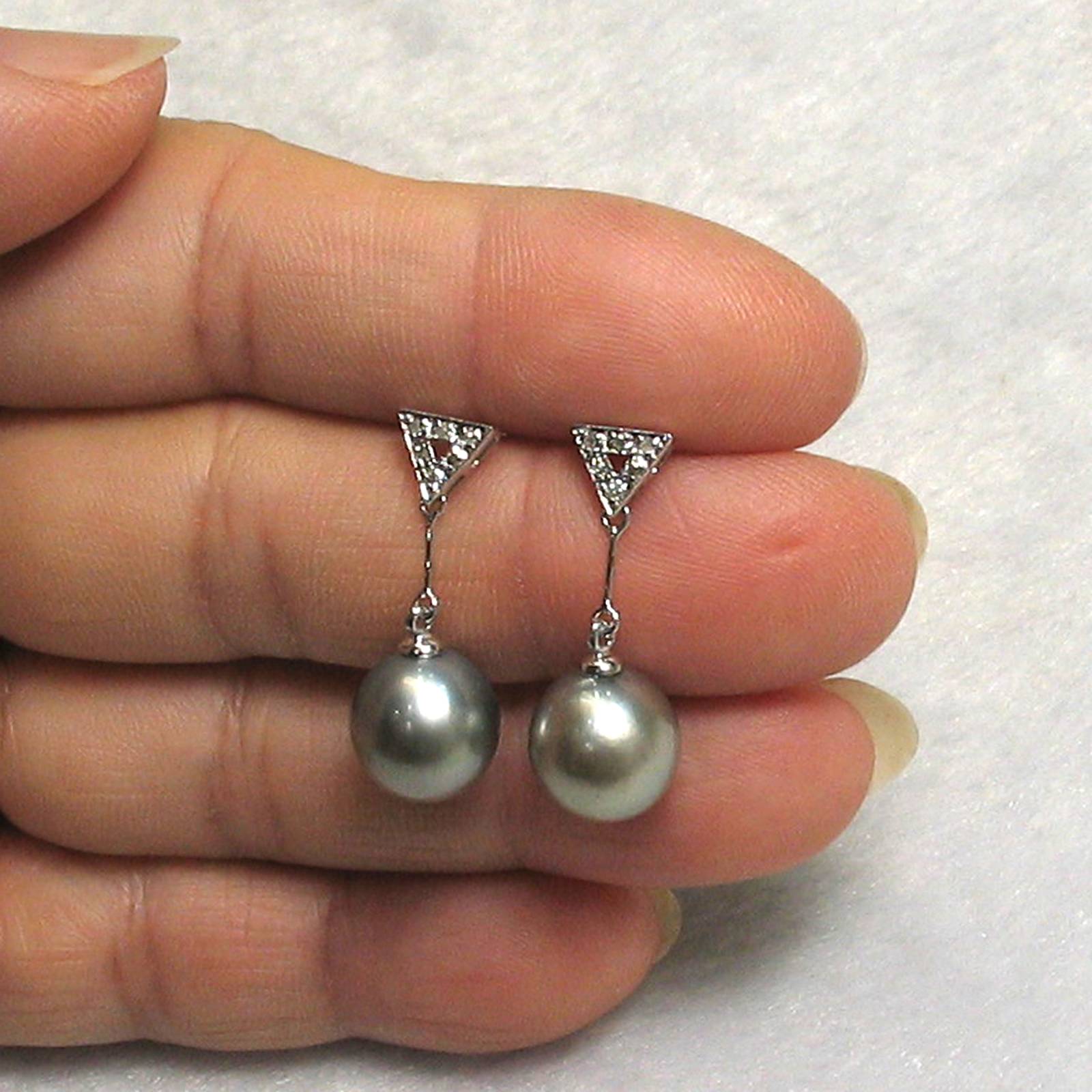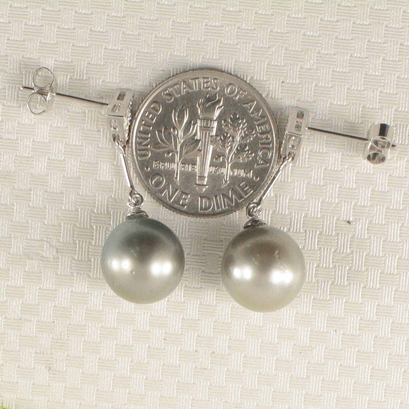 Genuine Diamonds & Smoky White Tahitian Pearl Dangle Earrings – 14k White Gold