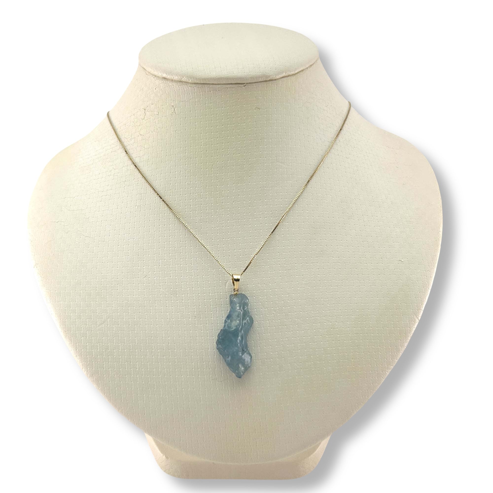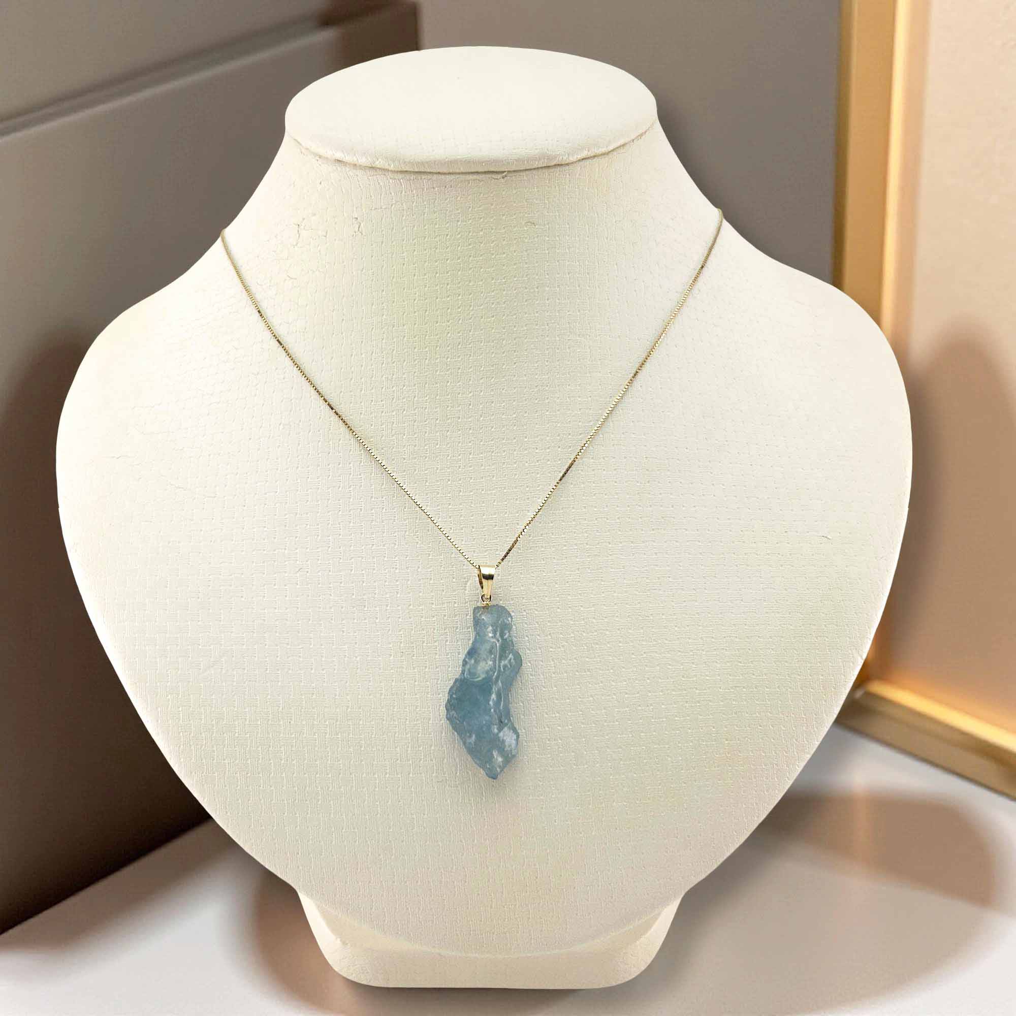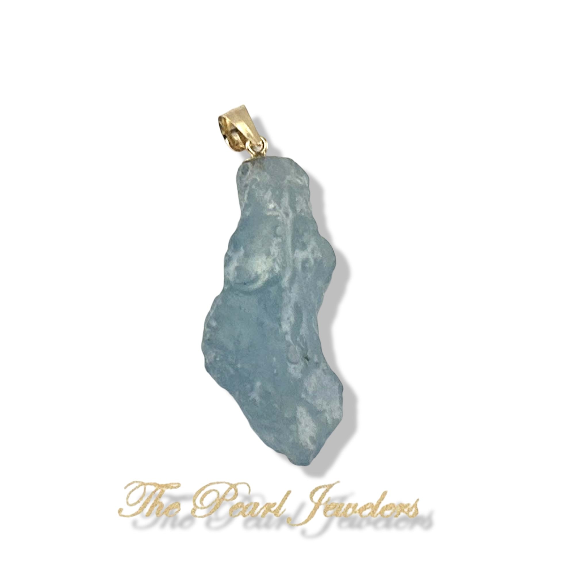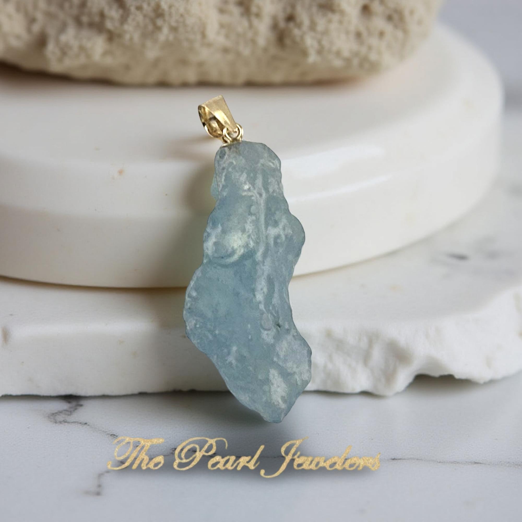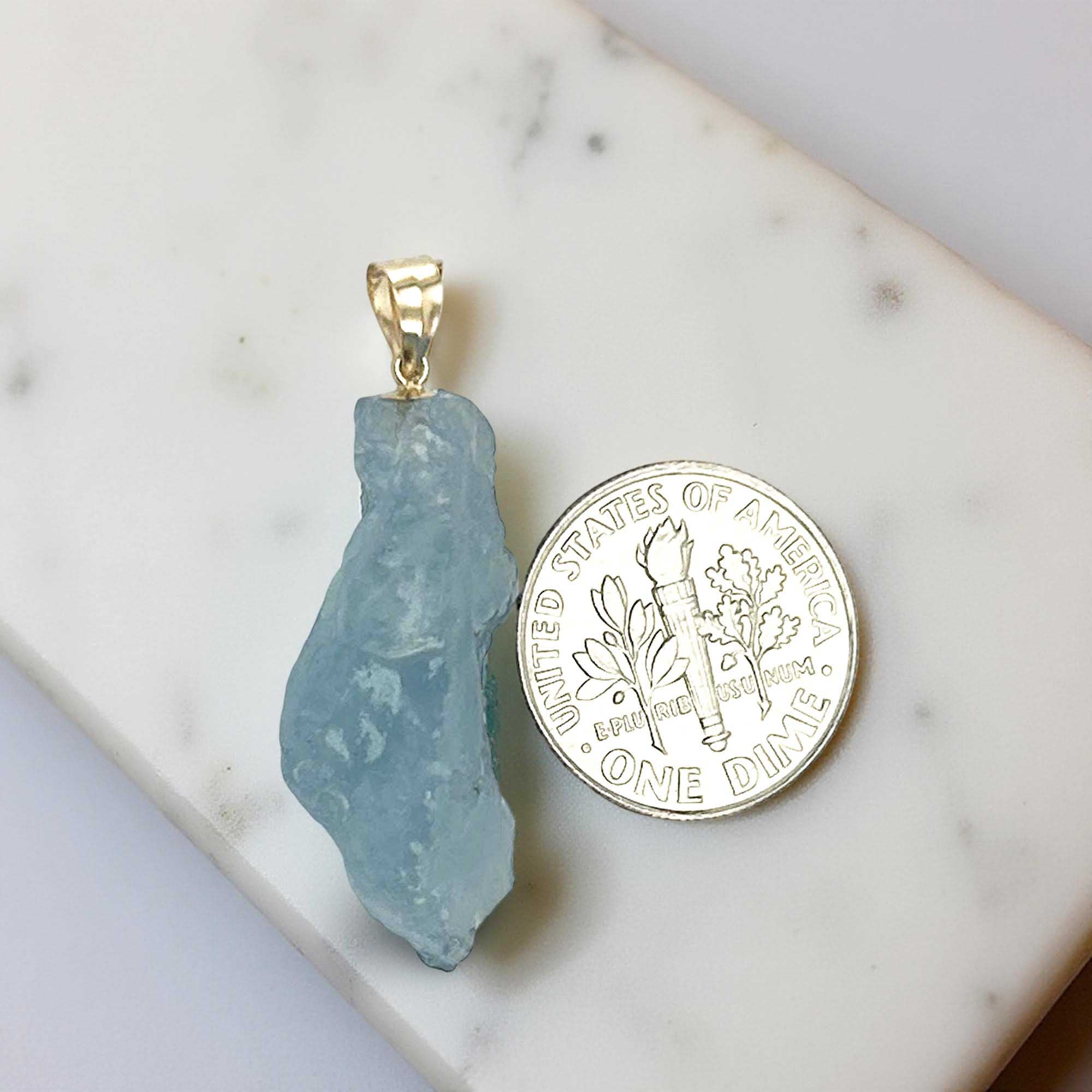 This large pendant showcases a genuine baroque rough aquamarine gemstone, set in solid 14K yellow gold for a striking look.