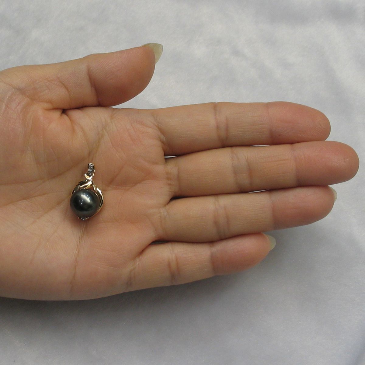 **14k Yellow Gold Feather Black Tahitian Pearl Pendant**