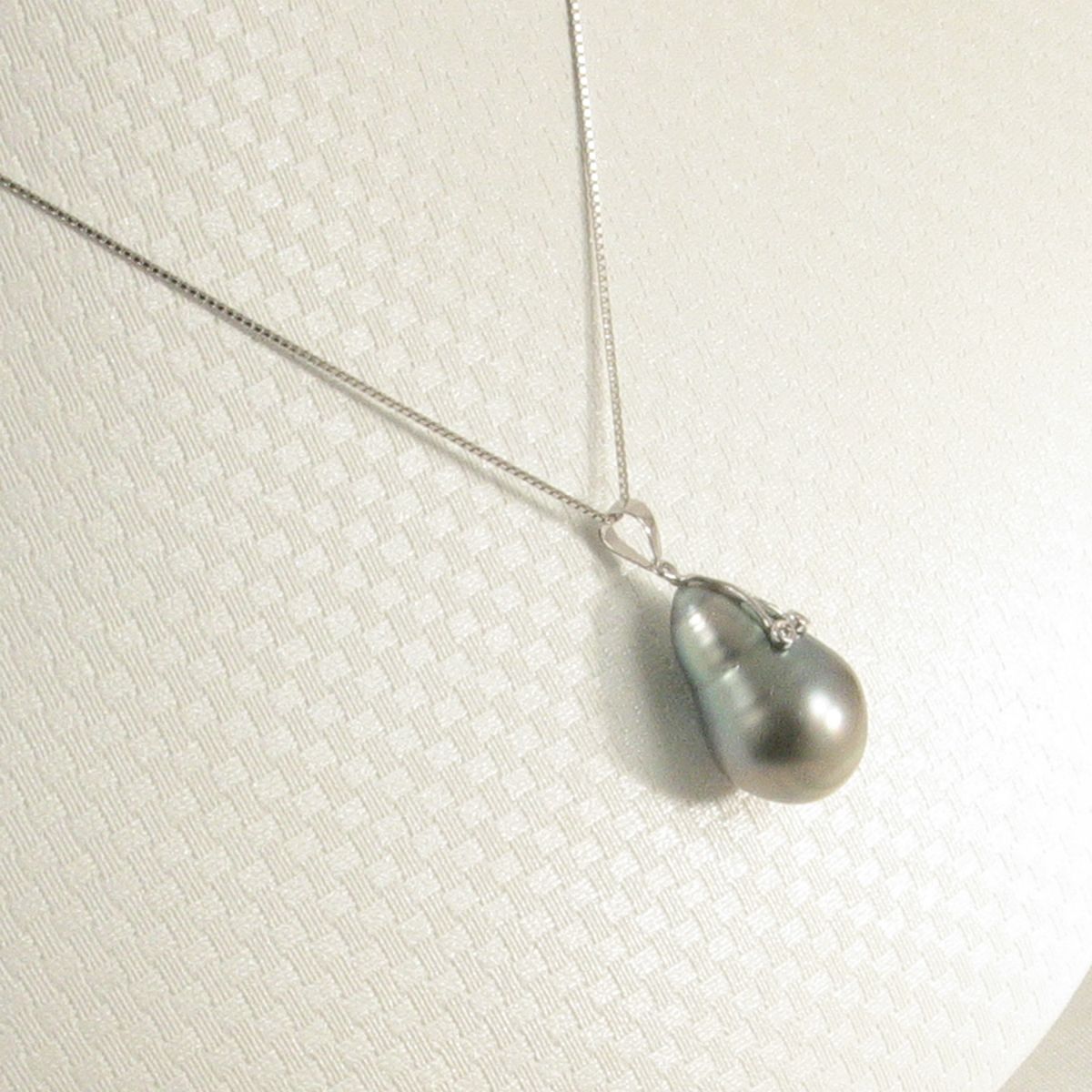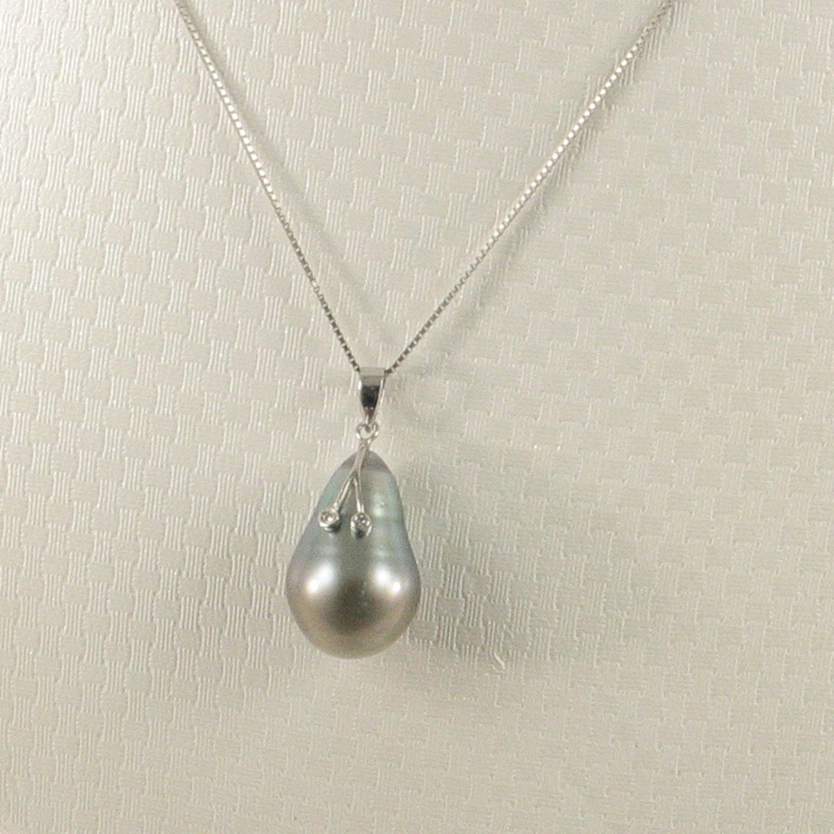 14k Solid White Gold Eyes-Design & Diamond Baroque Tahitian Pearl Pendant designed for comfort and dependable daily wear.