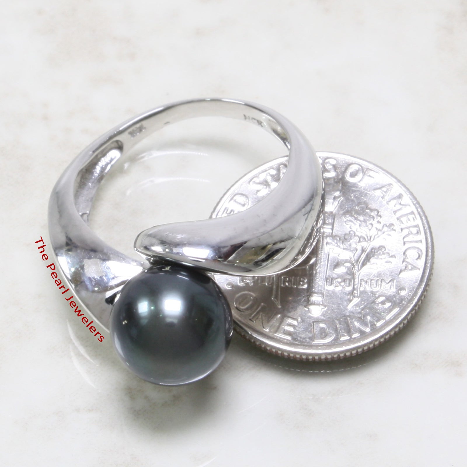 **3T00026B-Genuine-Black-Tahitian-Pearl-14kt-White-Solid-Gold-Solitaire-Ring**