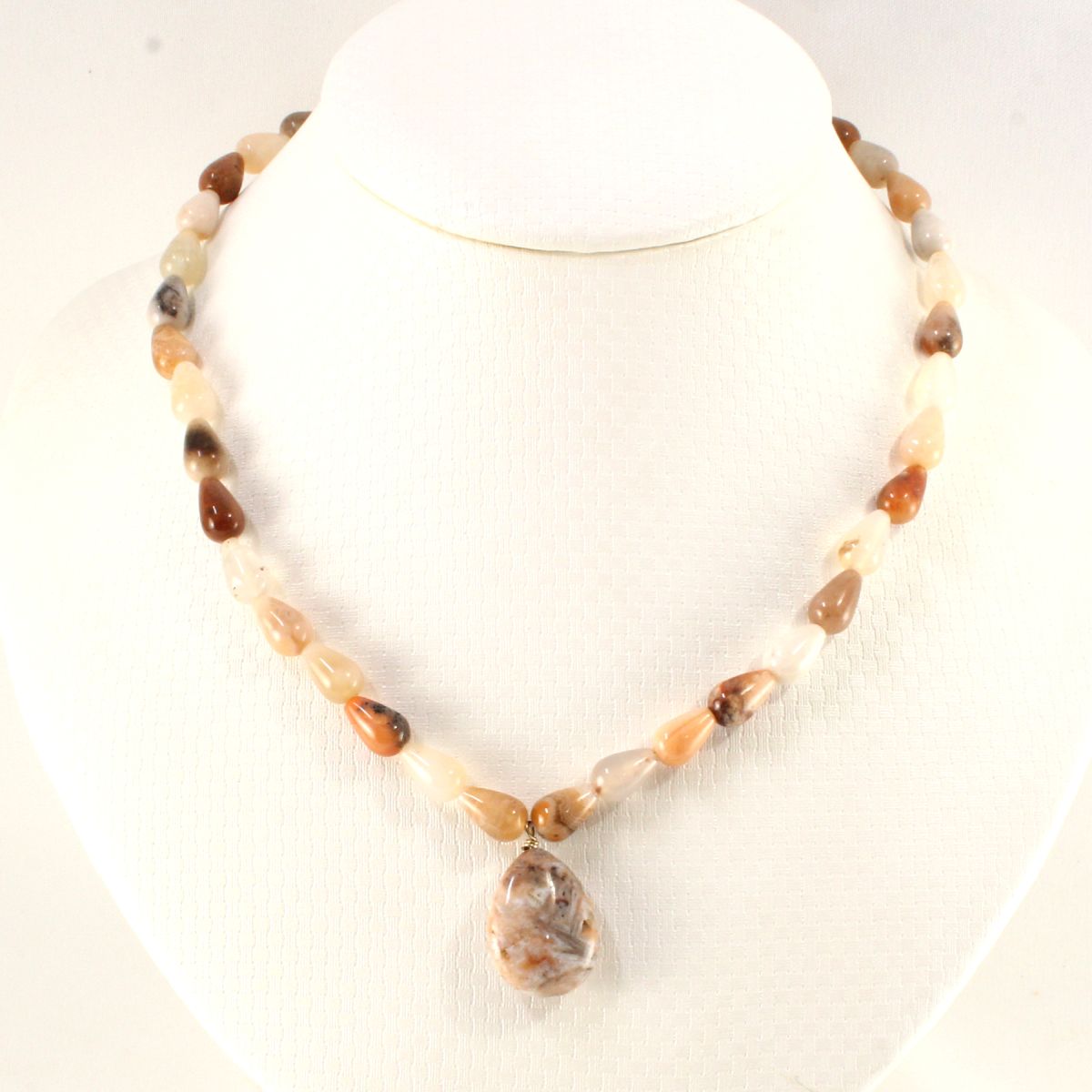 **Drop-Shaped Multi-Color Agate Necklace**
