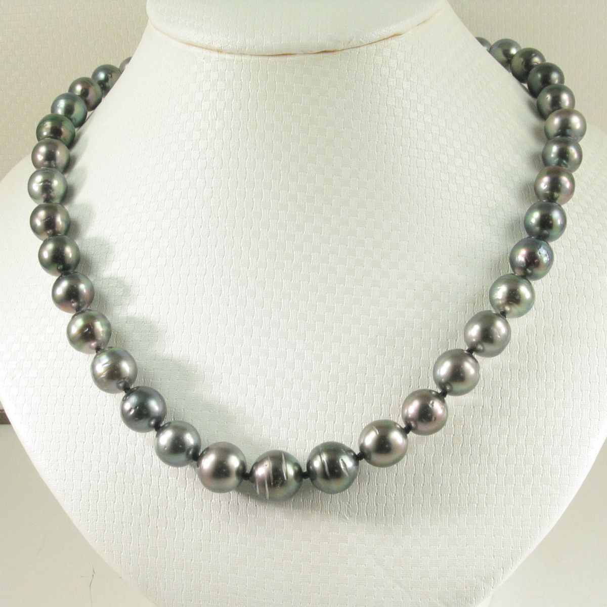 **Beautiful 14k Yellow Gold Clasp Graduated Black Tahitian Pearl Necklace**