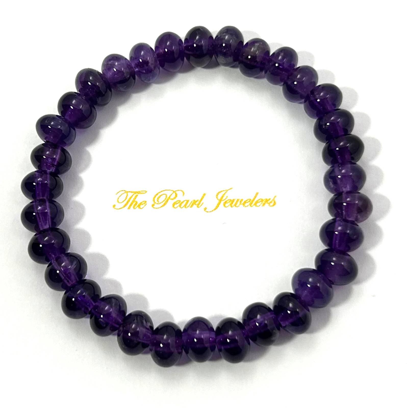 This endless bracelet features 8x6mm roundel amethyst beads. Crafted for daily wear, spiritual support, and gentle purple beauty.